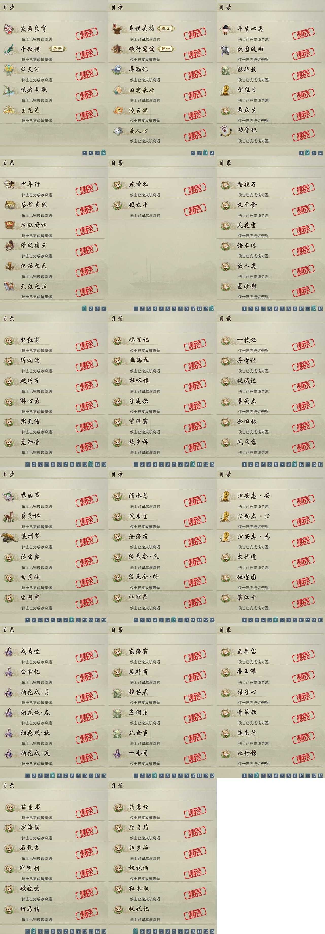 【奇遇】23个[天涯无归, 劝学记, 平生心愿, 惜往日, 争铸吴钩, 韶华故, 少年行, 故园风雨, 扶摇九天, 舞众生, 清风捕王, 侠行囧途, 寻猫记, 茶馆奇缘, 庆舞良宵, 千秋铸, 凌云梯, 炼狱厨神, 度人心, 旧宴承欢, 泛天河, 侠者成歌, 生花笔]
