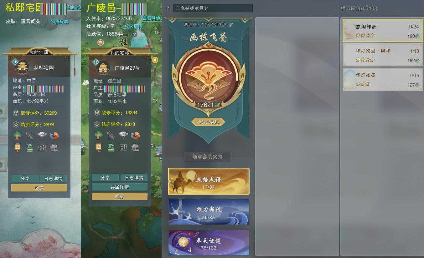 【家园】房屋等级16,社区等级7,私邸宅园,梓行点17621