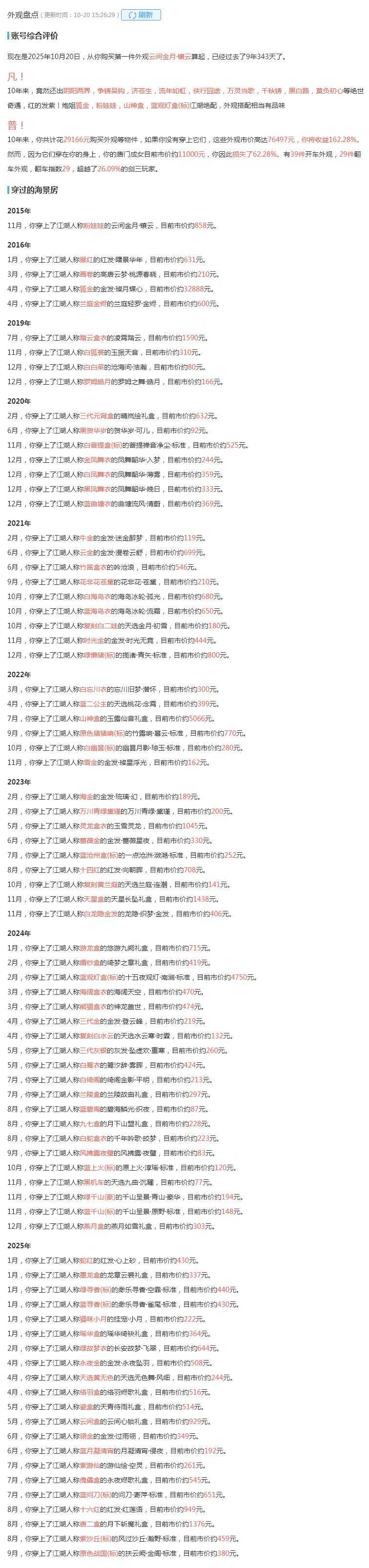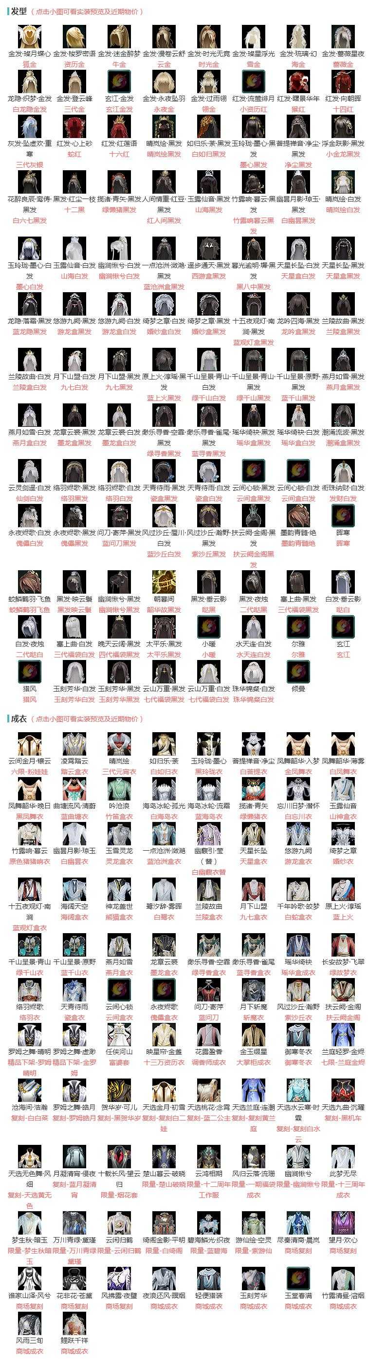 限时限量:[幽涧愀兮, 十三万资历衣, 烟花套, 蓝碧海, 十二周年工作服, 一期福袋成衣, 紫游仙, 云闲归鹤, 楚山破晓, 万川青绿黛瑾, 兰庭金烬, 十三周年成衣, 富婆套, 白绮阁, 梦生秋暗玉]