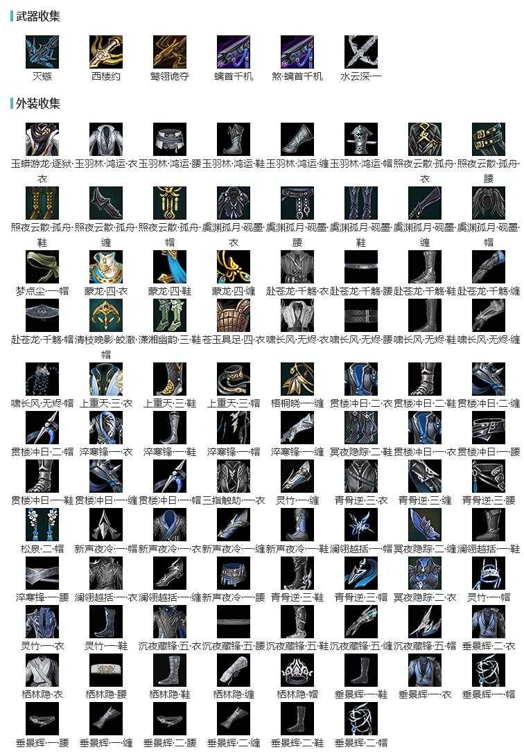 【拓印】6武器, 94成衣收集,100CW拓印螭首千机,100CW拓印鹫翎诡夺,100奇遇CW拓印煞·螭首千机