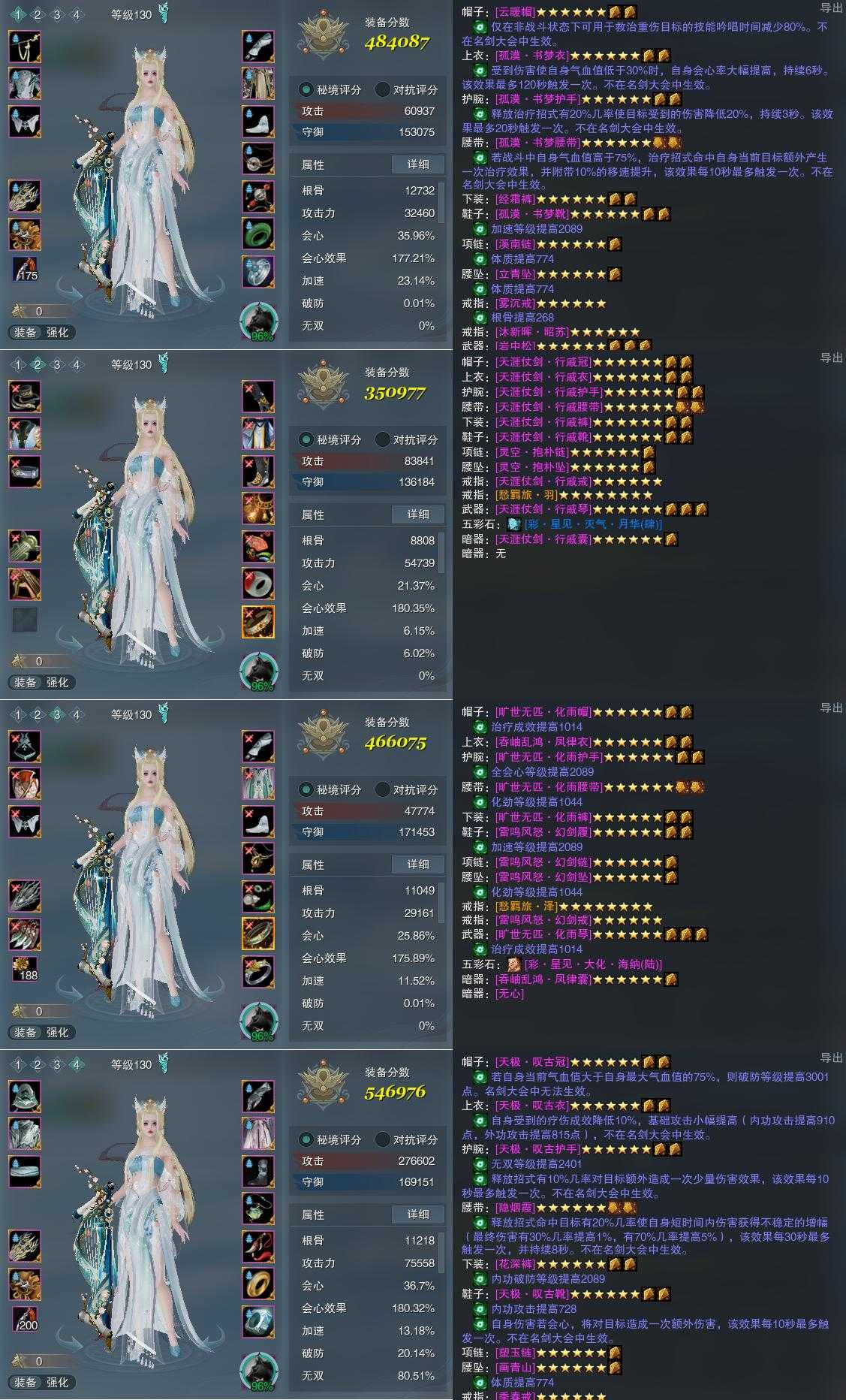 【装备】130级,相知PVE484087,装备二350977,相知PVP466075,莫问PVE546976