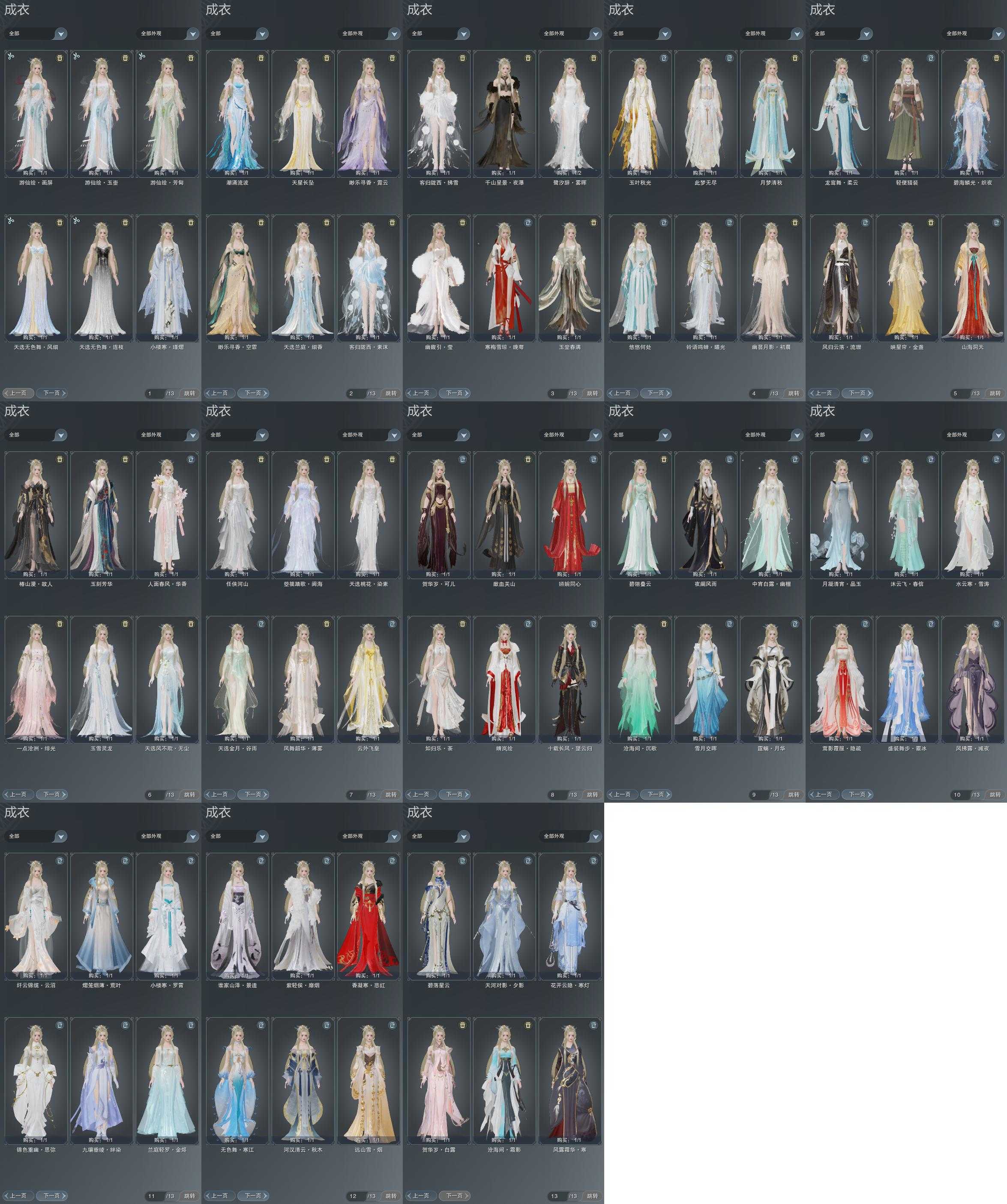 单盒成衣:[白如归衣, 白凤舞衣, 金幽昙衣, 天星盒衣, 白鹭衣, 蓝陇西成衣]