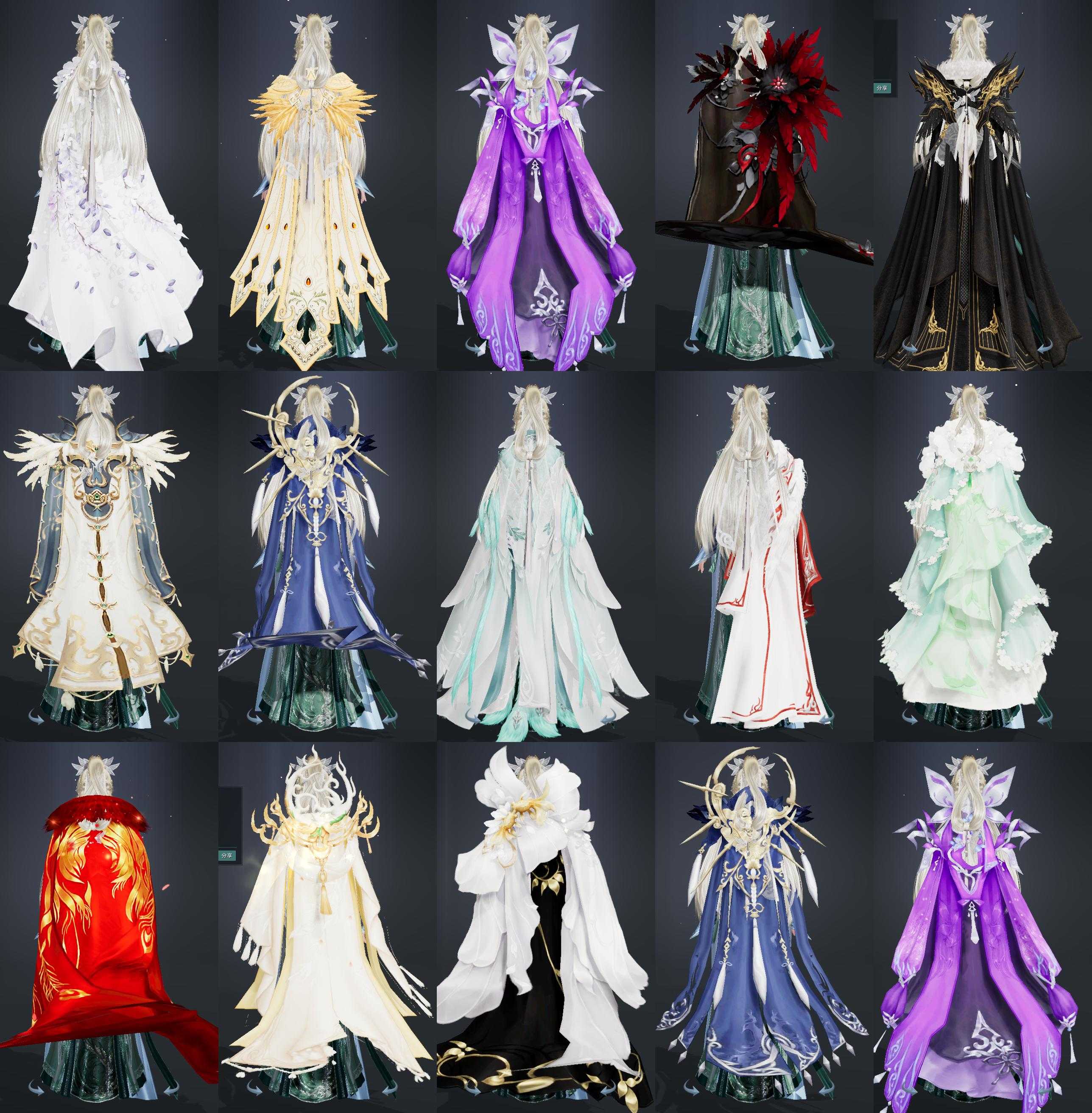 限时限量:[富婆套, 黄九壤, 水云寒雪涛, 绿云飞, 兰庭金烬, 白玫瑰, 蓝舞步, 霆螭月华, 十三万资历衣, 中宵幽檀, 寒梅晚萼, 烟花套, 一期福袋成衣, 十三周年成衣, 蓝水母, 十四周年工作服, 蓝碧海, 青游仙, 蓝游仙, 绿游仙]
