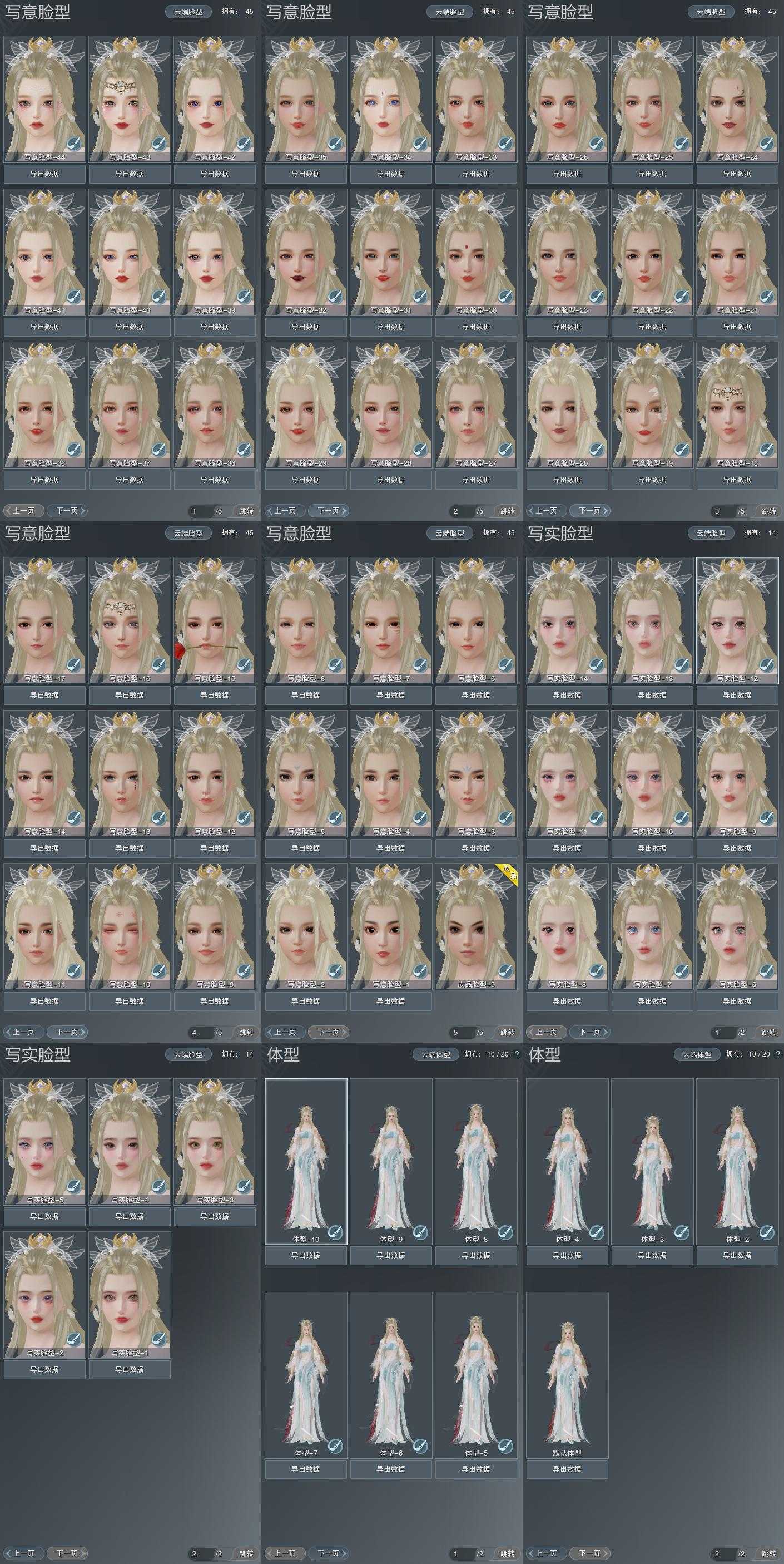 【捏脸】写意脸型45个,写实脸型14个,体型10个