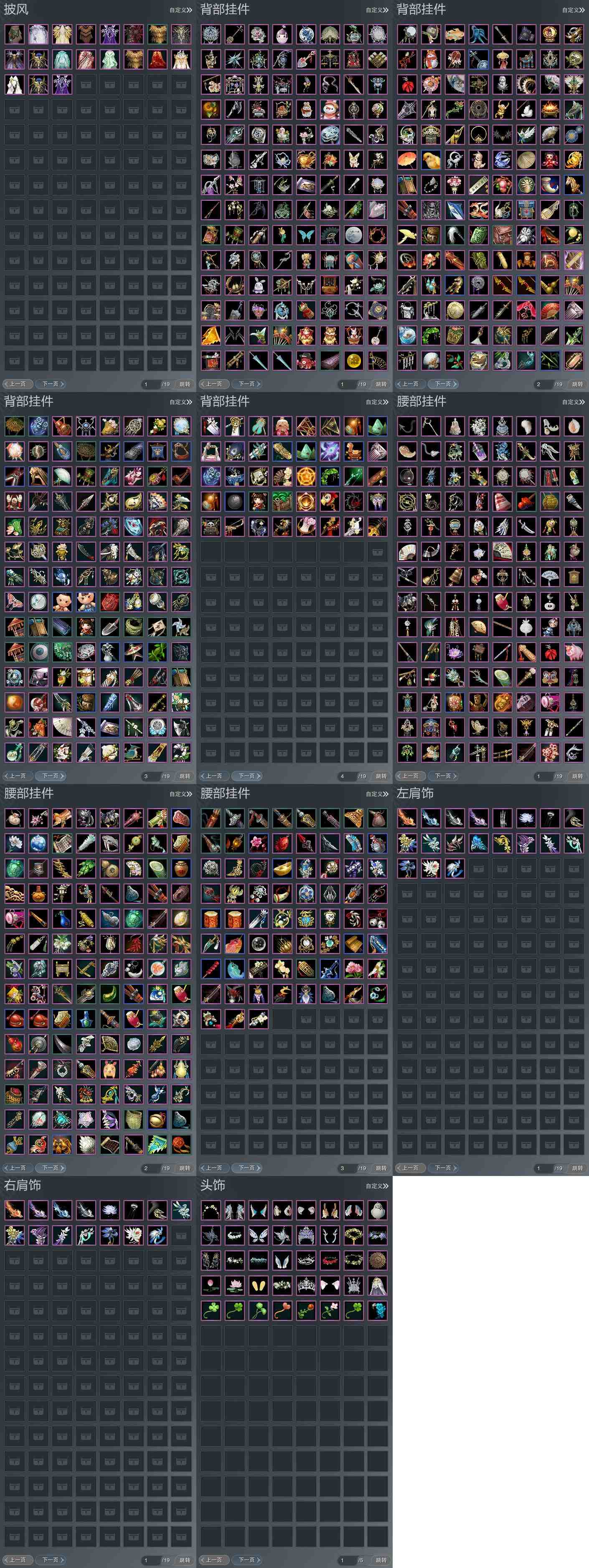 【肩饰】19左,15右,[双鱼曳波·慧福·左, 双鱼曳波·极乐·左, 双鱼曳波·无量·左, 双鱼曳波·如意·左, 绝代仙·千幻·左, 海升霞蔚·飞露·左, 歃血关山·左, 碧翎叠云·左, 华焰披锦·左][绝代仙·千幻·右, 海升霞蔚·飞露·右, 歃血关山·右, 碧翎叠云·右]