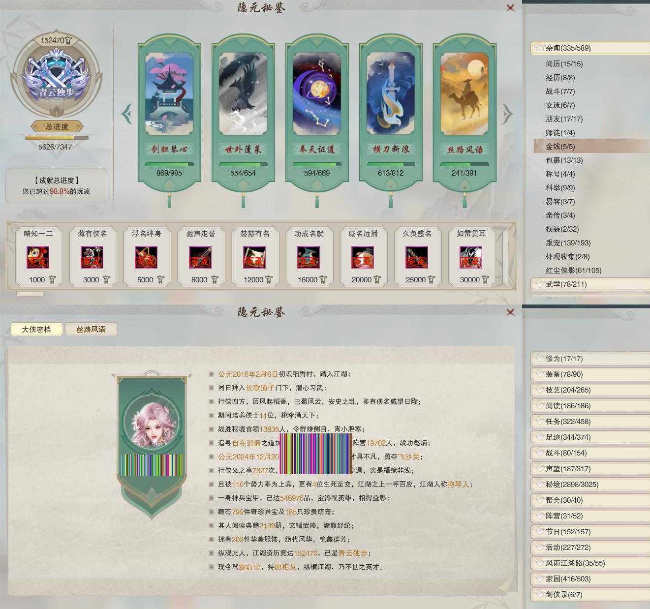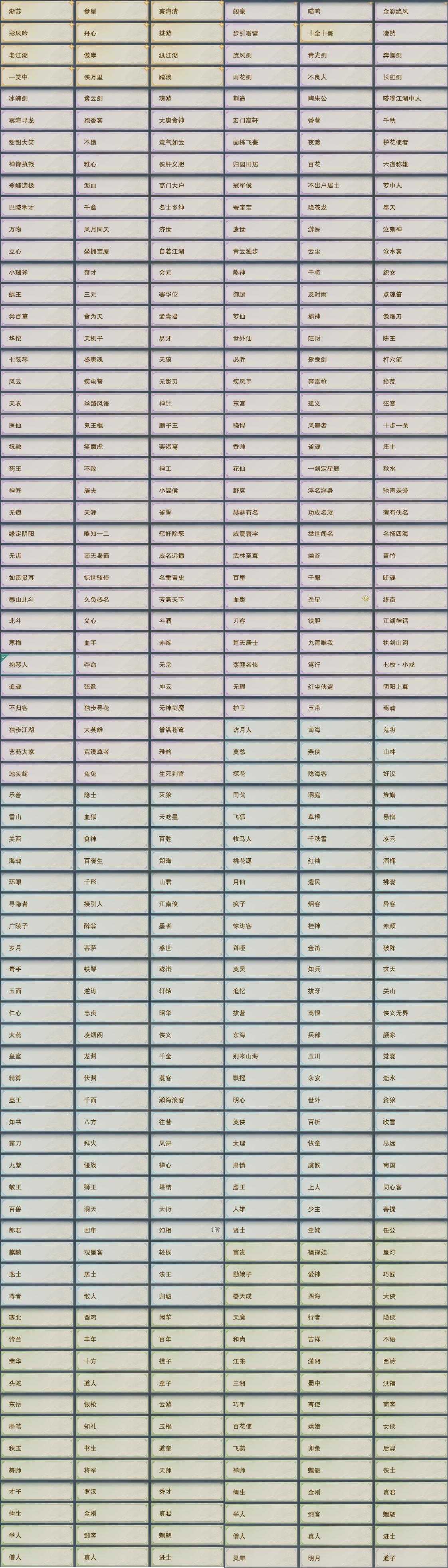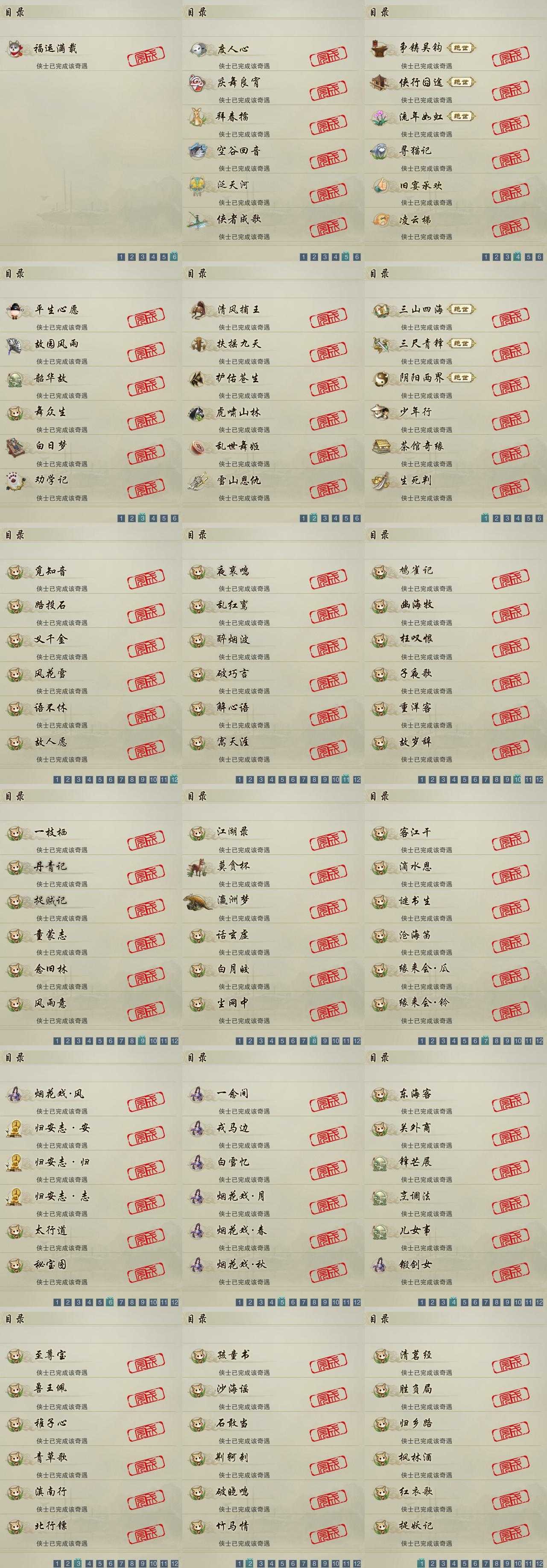 【奇遇】31个[白日梦, 三山四海, 劝学记, 雪山恩仇, 阴阳两界, 平生心愿, 乱世舞姬, 争铸吴钩, 韶华故, 虎啸山林, 护佑苍生, 少年行, 故园风雨, 扶摇九天, 三尺青锋, 流年如虹, 舞众生, 清风捕王, 侠行囧途, 寻猫记, 茶馆奇缘, 庆舞良宵, 生死判, 凌云梯, 度人心, 空谷回音, 旧宴承欢, 泛天河, 侠者成歌, 拜春擂]