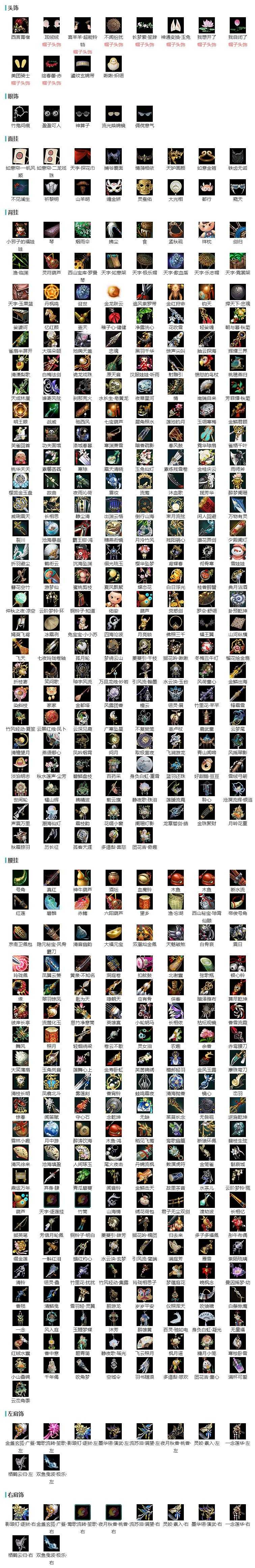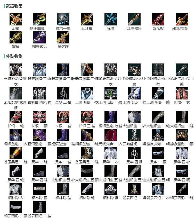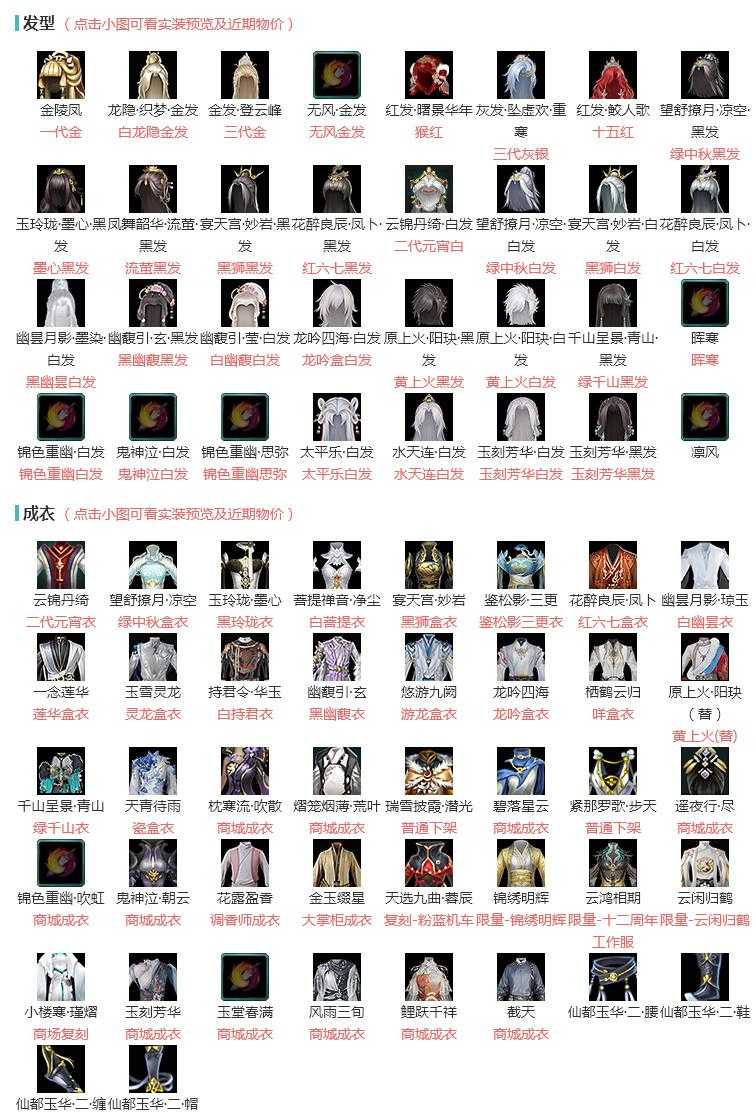 单盒成衣:[黑玲珑衣, 白菩提衣, 鉴松影三更衣, 白幽昙衣, 灵龙盒衣, 白持君衣, 游龙盒衣, 龙吟盒衣, 黄上火(替), 瓷盒衣]