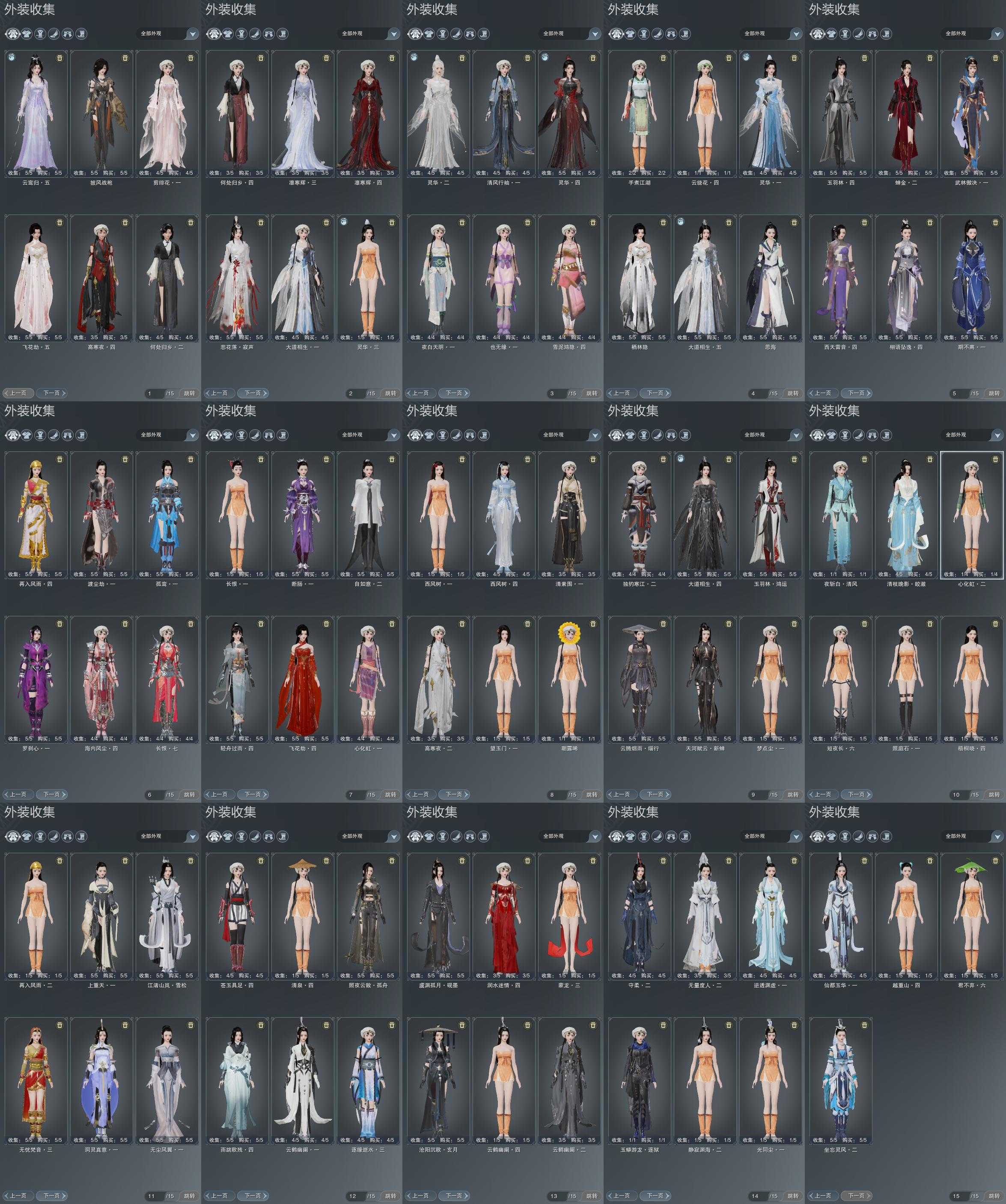 限时限量:[重华绯仪, 十三万资历衣, 十六万资历衣, 镜湖吹荷, 镜湖云遥, 镜湖踏晓, 镜湖阑珊, 十二周年工作服, 客行逍遥夜影, 客行逍遥撷英, 客行逍遥天旷, 十三周年成衣, 粉水母, 天河对影云砂, 万川青绿黛瑾, 蓝浪海, 庭落西风, 十四周年工作服, 云闲归鹤, 蓝绮阁, 白绮阁, 浮光绡, 蓝碧海, 黑碧海]