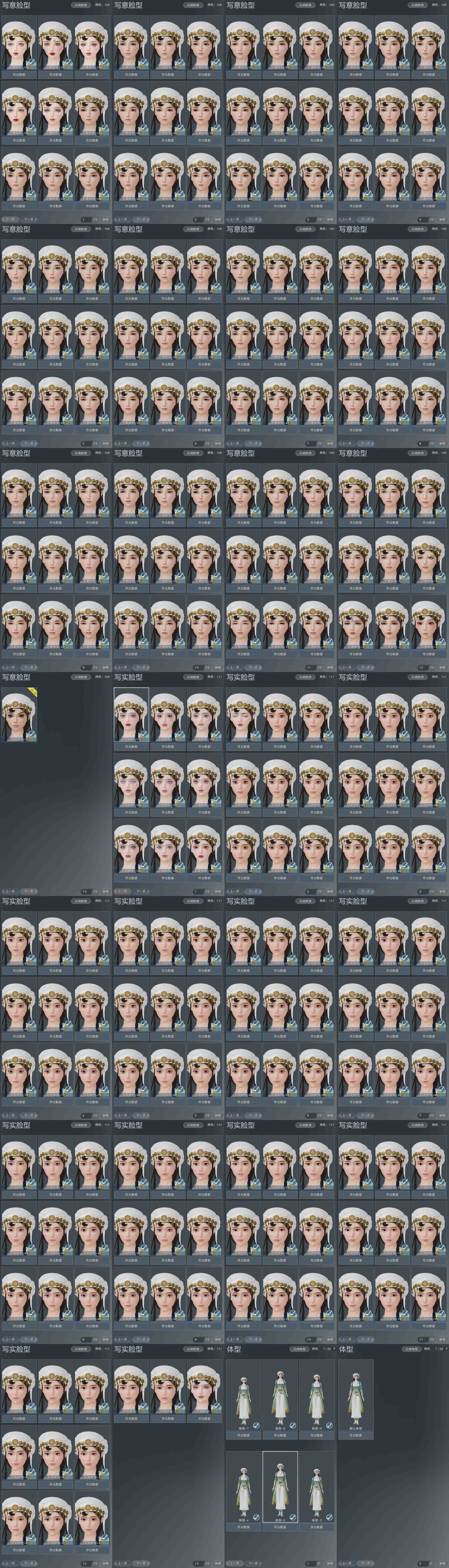 【捏脸】写意脸型109个,写实脸型111个,体型7个