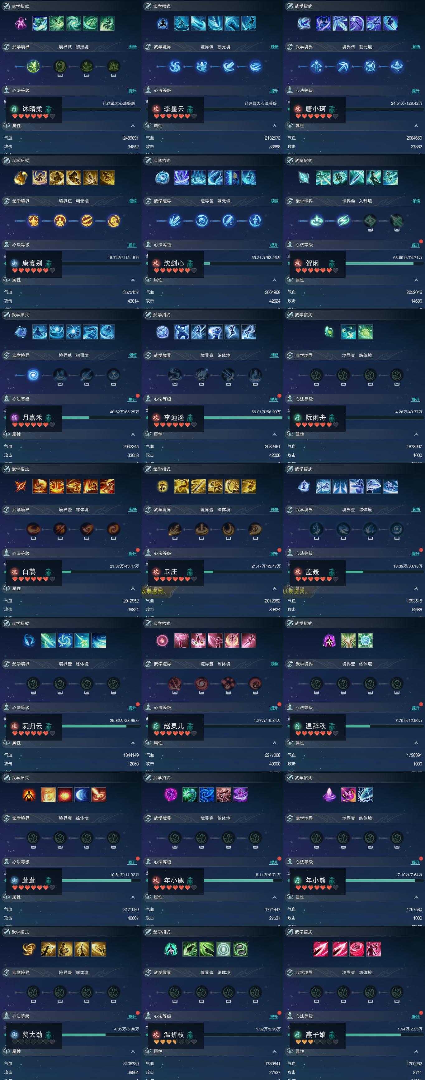 【同伴】沐晴柔90级境界贰,李星云90级境界伍,唐小珂86级境界伍,康宴别85级境界伍,沈剑心84级境界伍,贺闲82级境界叁,月嘉禾81级境界贰,李逍遥80级境界壹,阮闲舟79级境界壹,白鹊78级境界壹,卫庄78级境界壹,盖聂76级境界壹,阮归云75级境界壹,赵灵儿71级境界壹,温辞秋69级境界壹,茸茸68级境界壹,年小鹿66级境界壹,年小熊65级境界壹,费大劲63级境界壹,温折枝60级境界壹,燕子娘56级境界壹