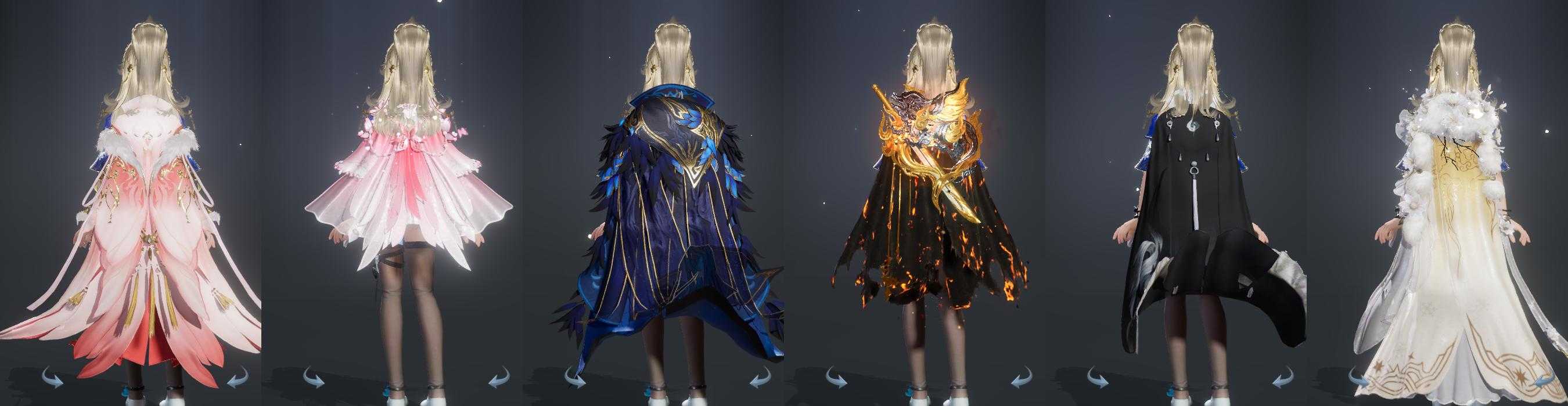 【披风】6个,[青盒子披风, 唐盒子披风, 粉盒子披风, 玉树, 玲珑意, 业火劫]