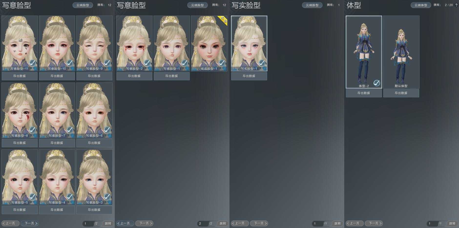 【捏脸】写意脸型12个,写实脸型1个,体型2个