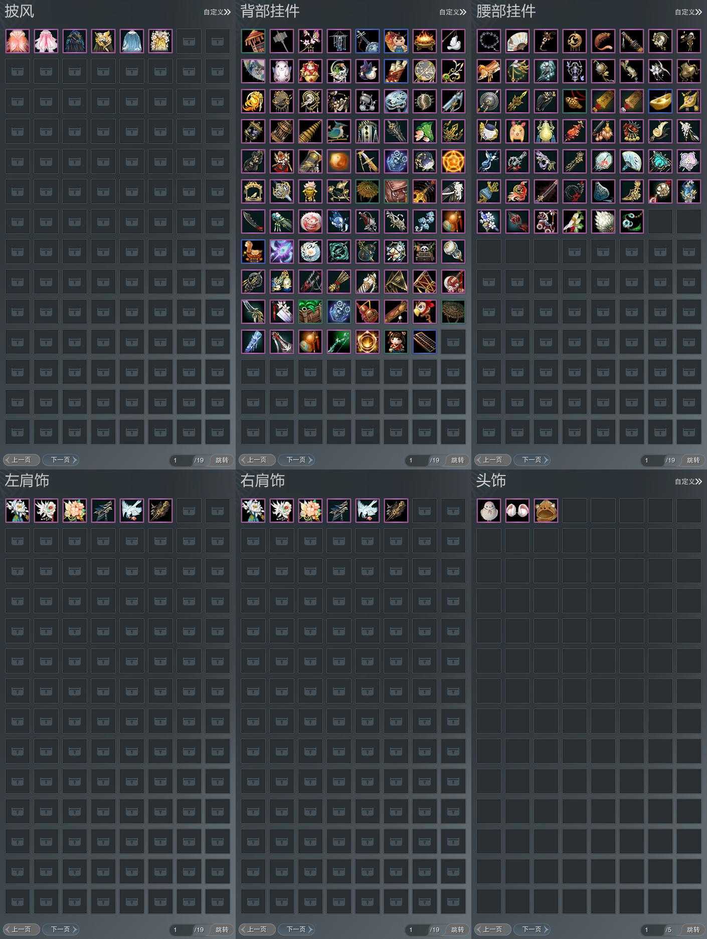 【肩饰】6左,6右,[陌上窈窕·左, 天穹掠影·左, 鹤影天青·左][陌上窈窕·右, 天穹掠影·右, 鹤影天青·右]