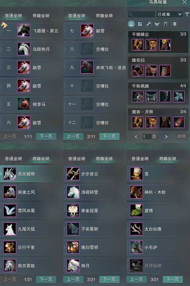 【坐骑】7个[飞霞骠黑云, 乌蹄抱月]