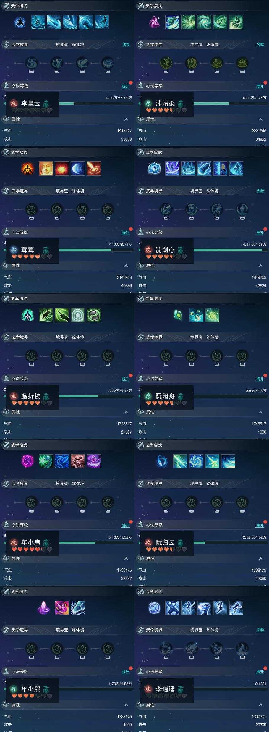 【同伴】李星云68级境界壹,沐晴柔66级境界壹,茸茸66级境界壹,沈剑心62级境界壹,温折枝62级境界壹,阮闲舟62级境界壹,年小鹿61级境界壹,阮归云61级境界壹,年小熊61级境界壹,李逍遥1级境界壹