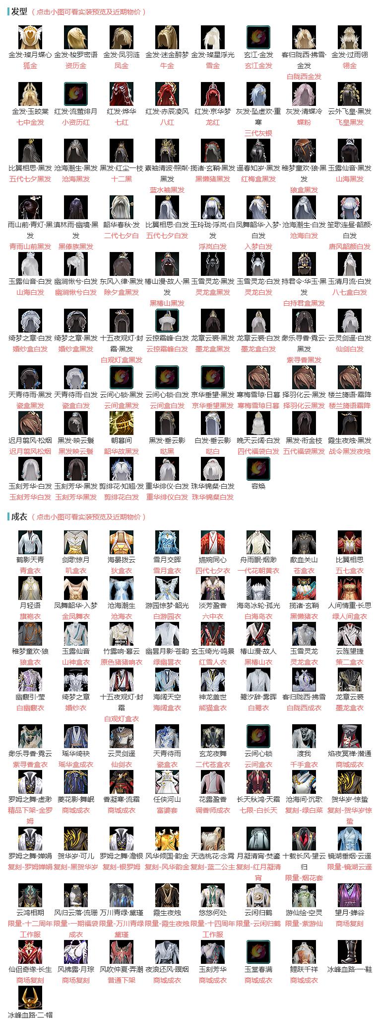 限时限量:[云闲归鹤, 镜湖云遥, 万川青绿黛瑾, 烟花套, 白长天, 十四周年工作服, 十二周年工作服, 富婆套, 一期福袋成衣, 紫游仙]