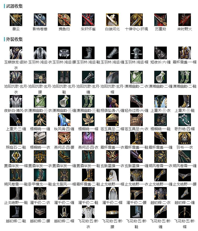 【拓印】8武器, 72成衣收集,95CW拓印朱轩怀雀,100CW拓印十律守心·犴魂,110CW拓印白狼河北,100小CW拓印来时野火