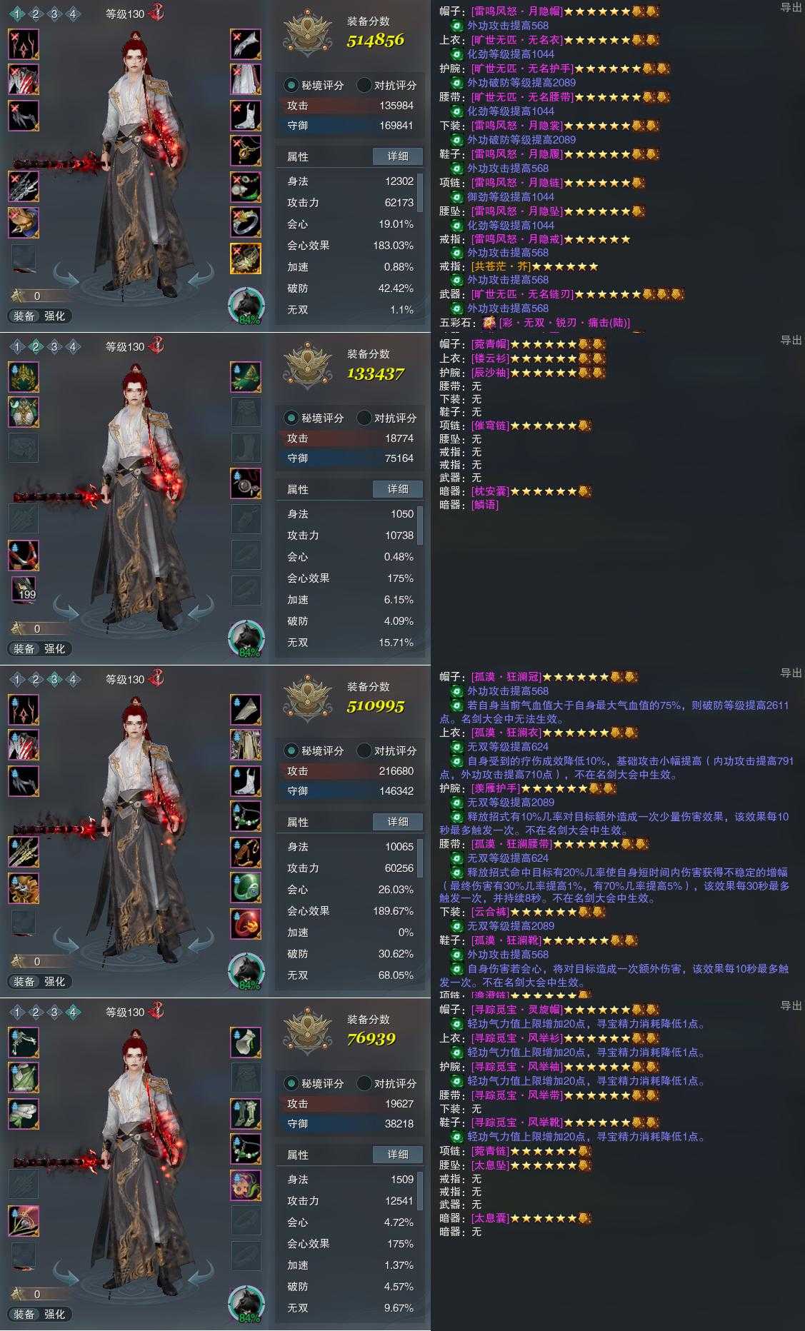 【装备】130级,隐龙诀PVP514856,装备二133437,隐龙诀PVE510995,装备四76939