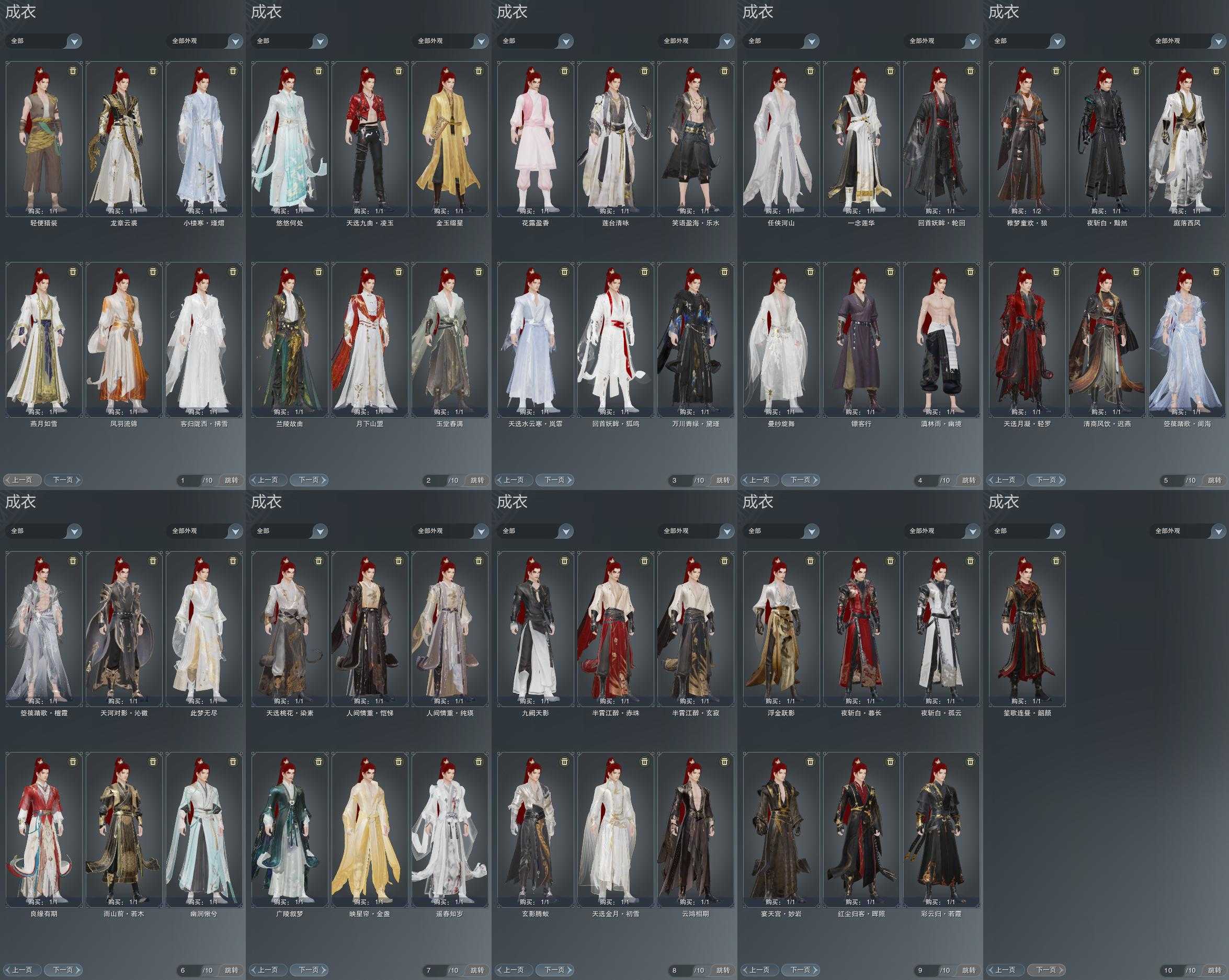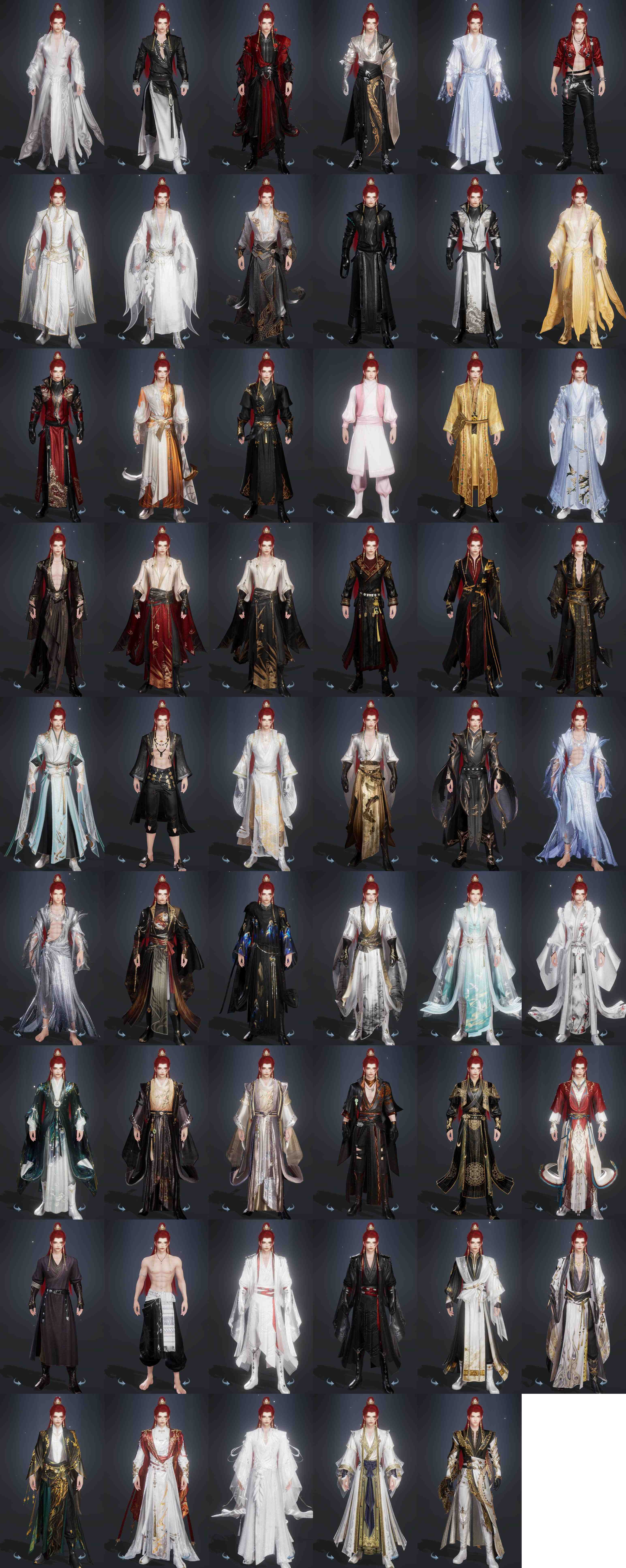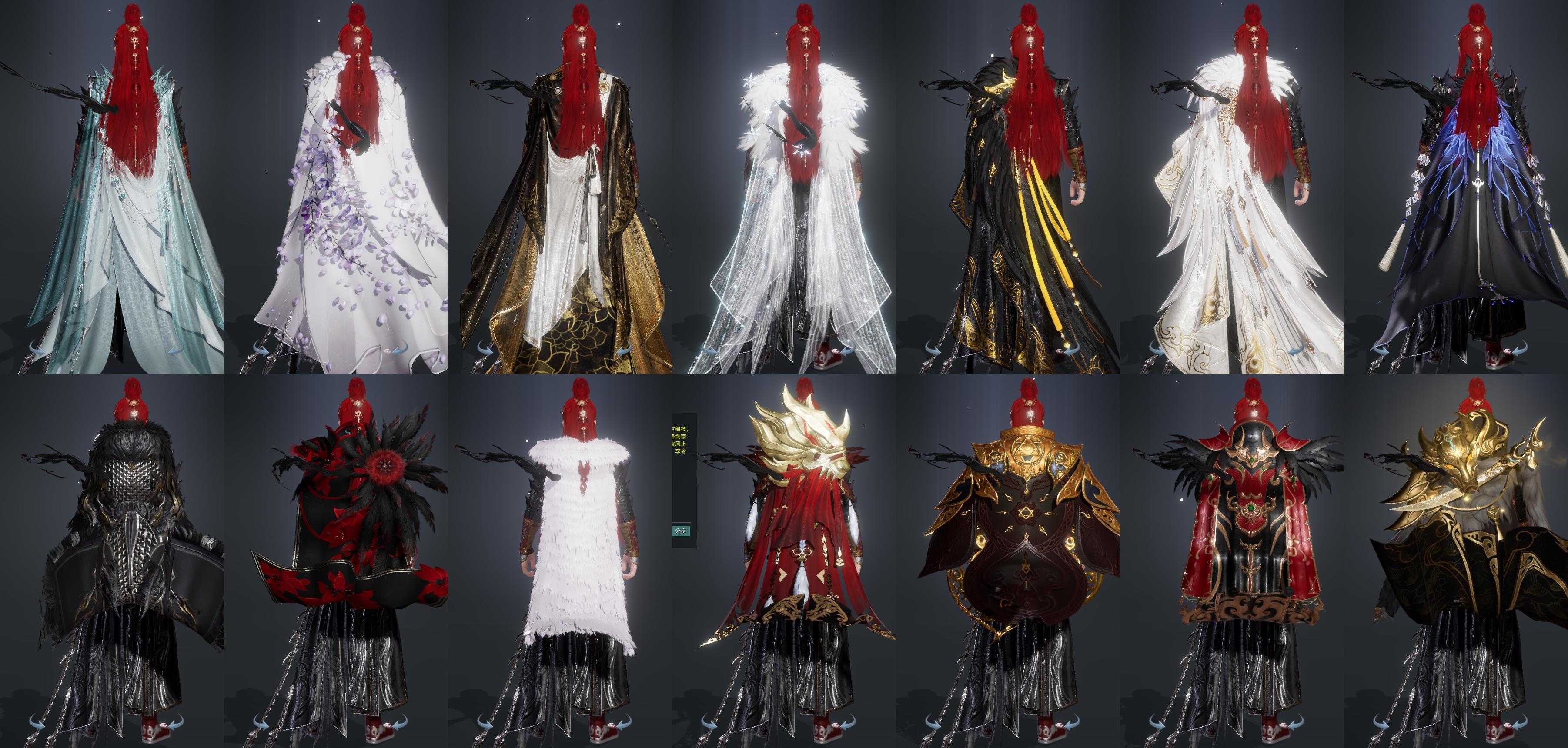 复刻:[复刻黑玫瑰, 复刻蓝水云, 红机车, 复刻白二娃, 白二公主, 夜斩白孤云, 夜斩白暮长, 彩云归若霞, 五期福袋成衣]