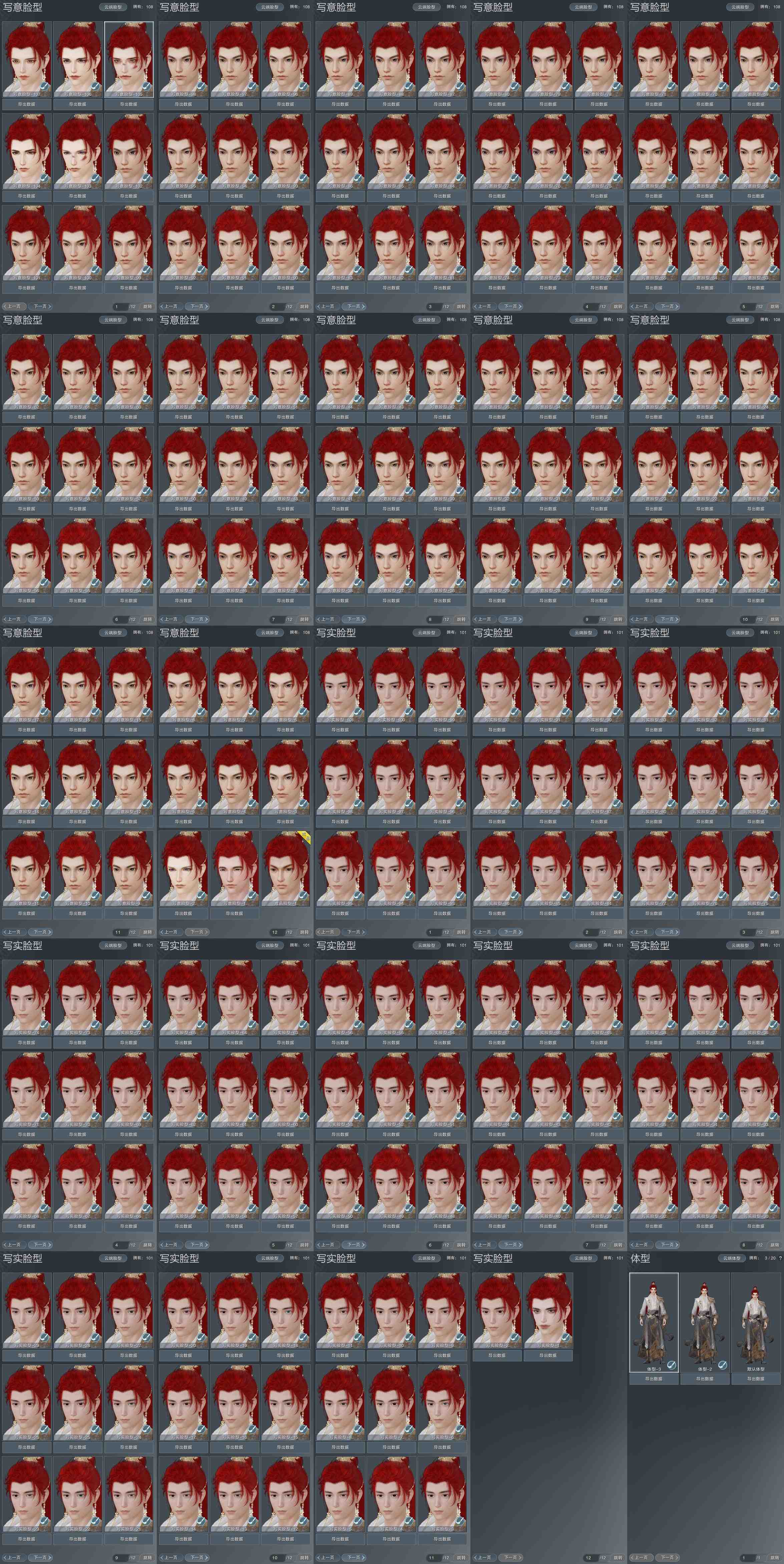 【捏脸】写意脸型108个,写实脸型101个,体型3个