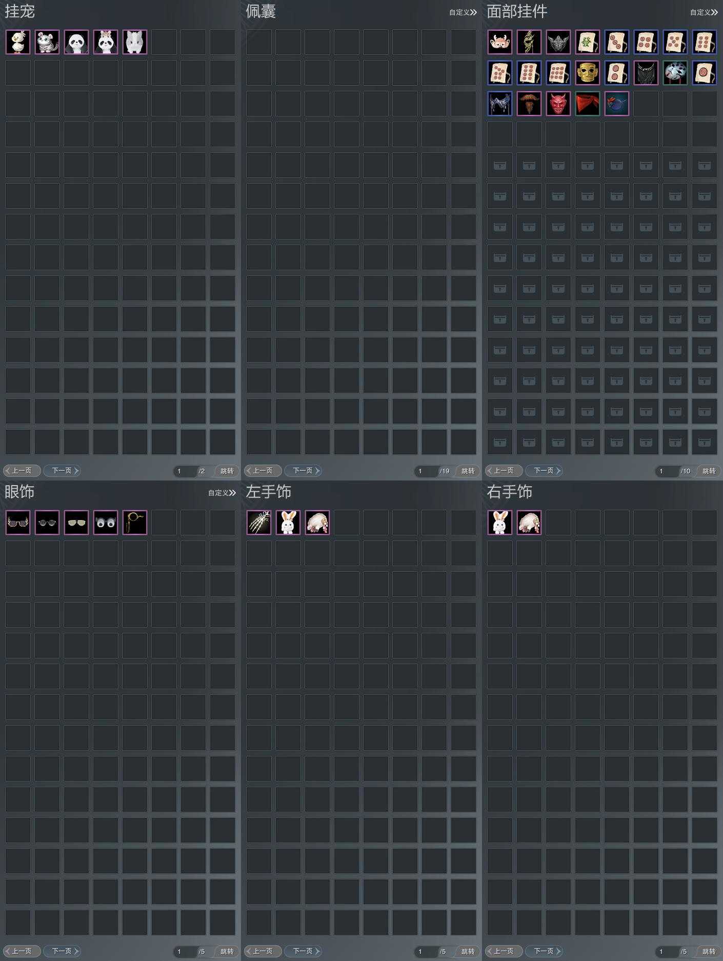 【肩饰】8左,8右,[绝代仙·墨楼·左, 一念莲华·左, 海升霞蔚·飞露·左, 觅花踪·碧空·左, 九阙天影·左][绝代仙·墨楼·右, 一念莲华·右, 海升霞蔚·飞露·右, 觅花踪·碧空·右, 九阙天影·右]