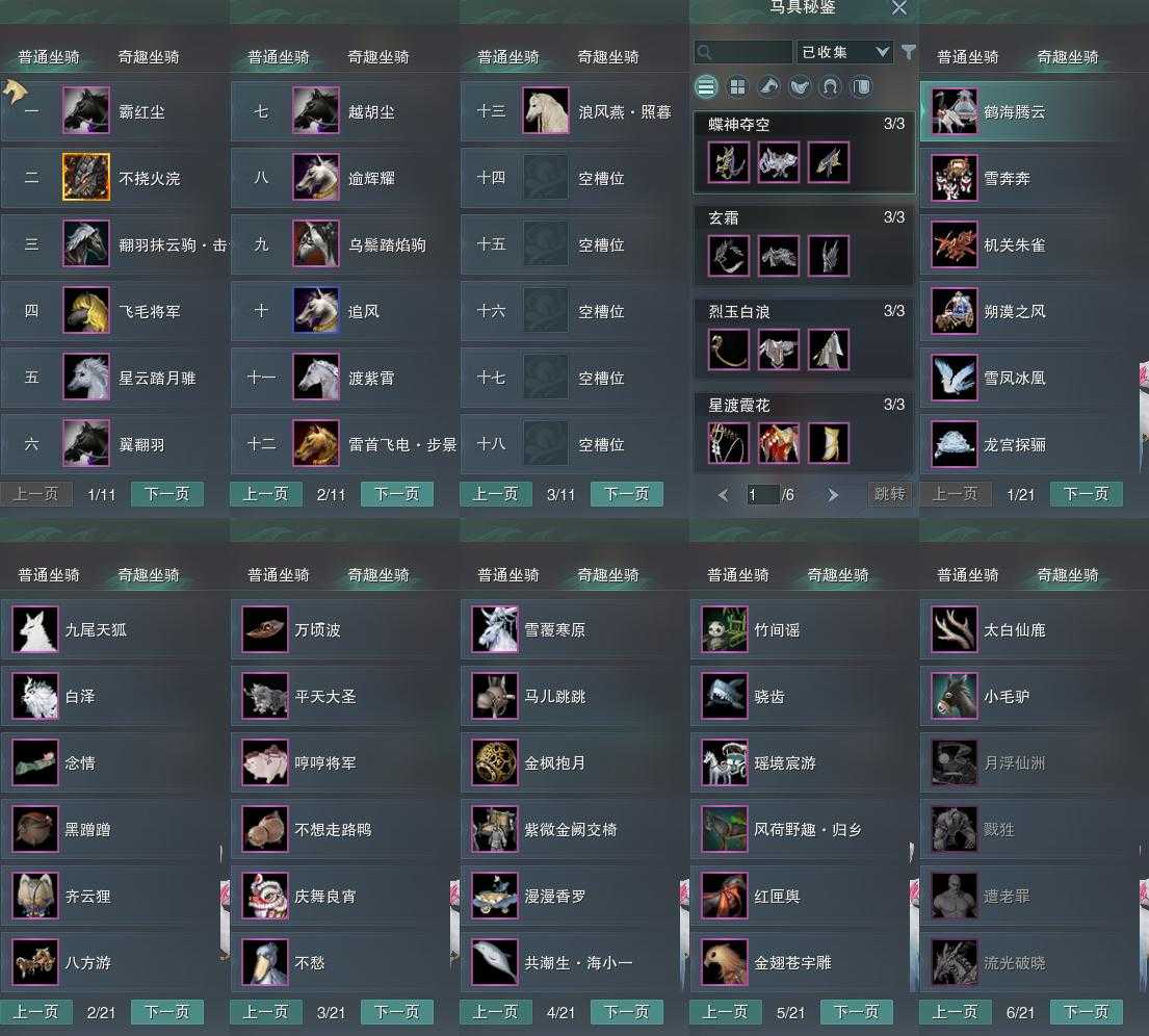 【坐骑】13个[恶人火兽, 星云踏月骓, 飞毛将军, 翻羽抹云驹击云, 霸红尘, 雷首飞电步景, 乌鬃踏焰驹]