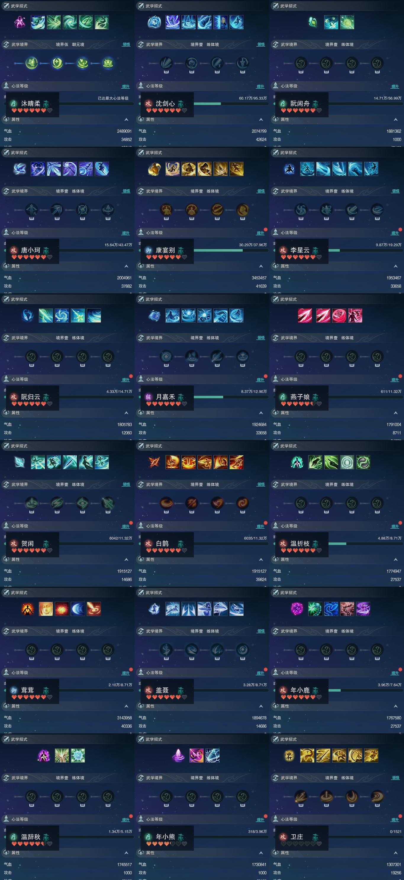 【同伴】沐晴柔90级境界伍,沈剑心85级境界壹,阮闲舟80级境界壹,唐小珂78级境界壹,康宴别77级境界壹,李星云72级境界壹,阮归云70级境界壹,月嘉禾69级境界壹,燕子娘68级境界壹,贺闲68级境界壹,白鹊68级境界壹,温折枝66级境界壹,茸茸66级境界壹,盖聂66级境界壹,年小鹿65级境界壹,温辞秋62级境界壹,年小熊60级境界壹,卫庄1级境界壹