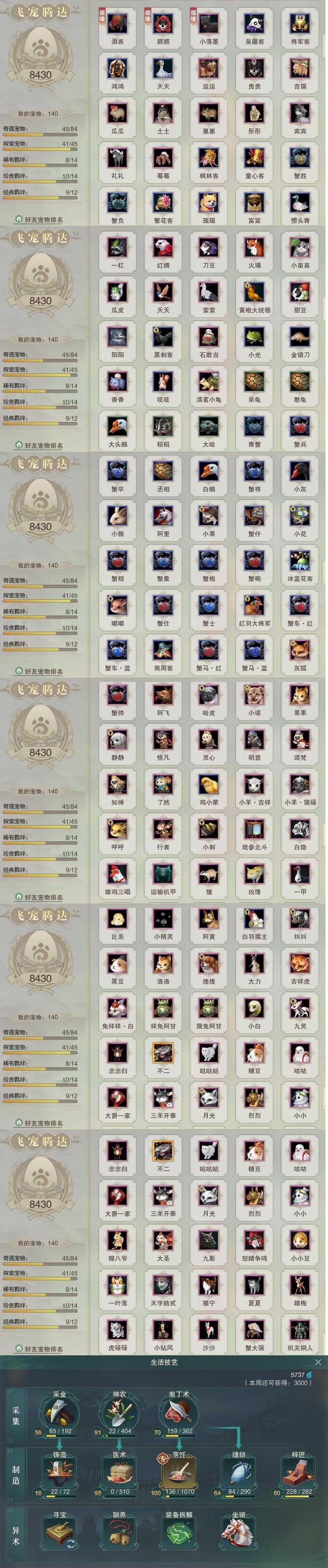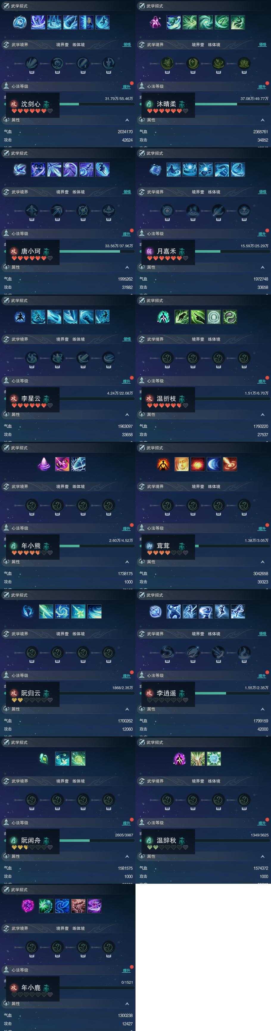 【同伴】沈剑心81级境界壹,沐晴柔79级境界壹,唐小珂77级境界壹,月嘉禾74级境界壹,李星云73级境界壹,温折枝64级境界壹,年小熊61级境界壹,茸茸58级境界壹,阮归云56级境界壹,李逍遥56级境界壹,阮闲舟40级境界壹,温辞秋39级境界壹,年小鹿1级境界壹