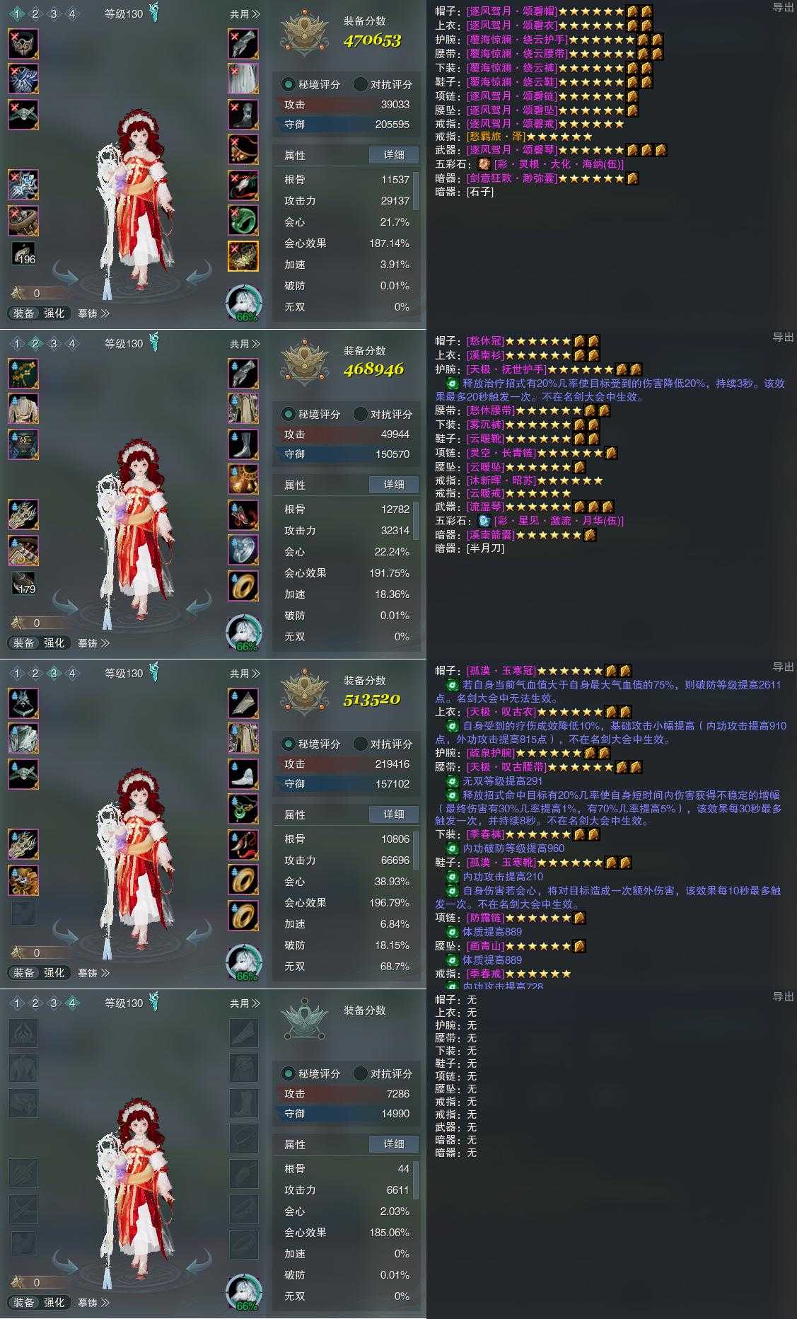 【装备】130级,相知PVP470653,相知PVE468946,莫问PVE513520,装备四0