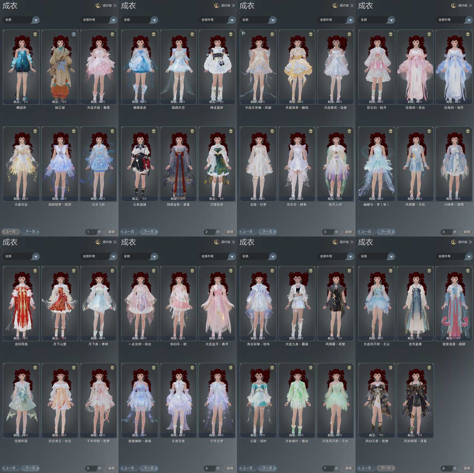 单盒成衣:[粉如归衣, 紫游园衣, 六中衣, 踏青盒衣, 粉沧洲盒衣, 蓝幽馥衣替, 天星盒衣, 潮涌盒衣]