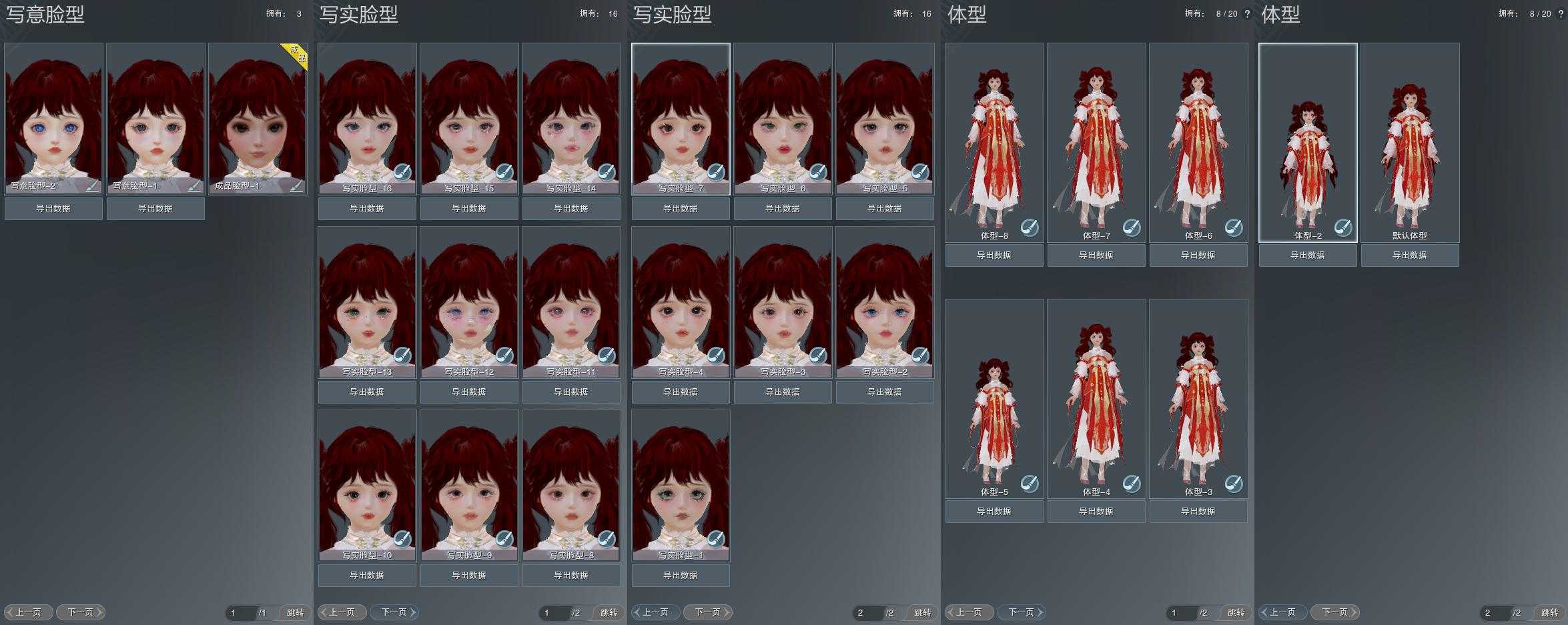 【捏脸】写意脸型3个,写实脸型16个,体型8个