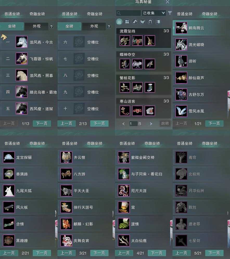 【坐骑】5个[踏炎霸地, 西风瘦逐狱, 飞霞骠惊帆, 浪风燕今古]