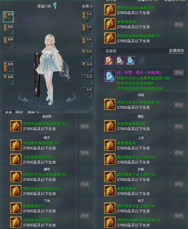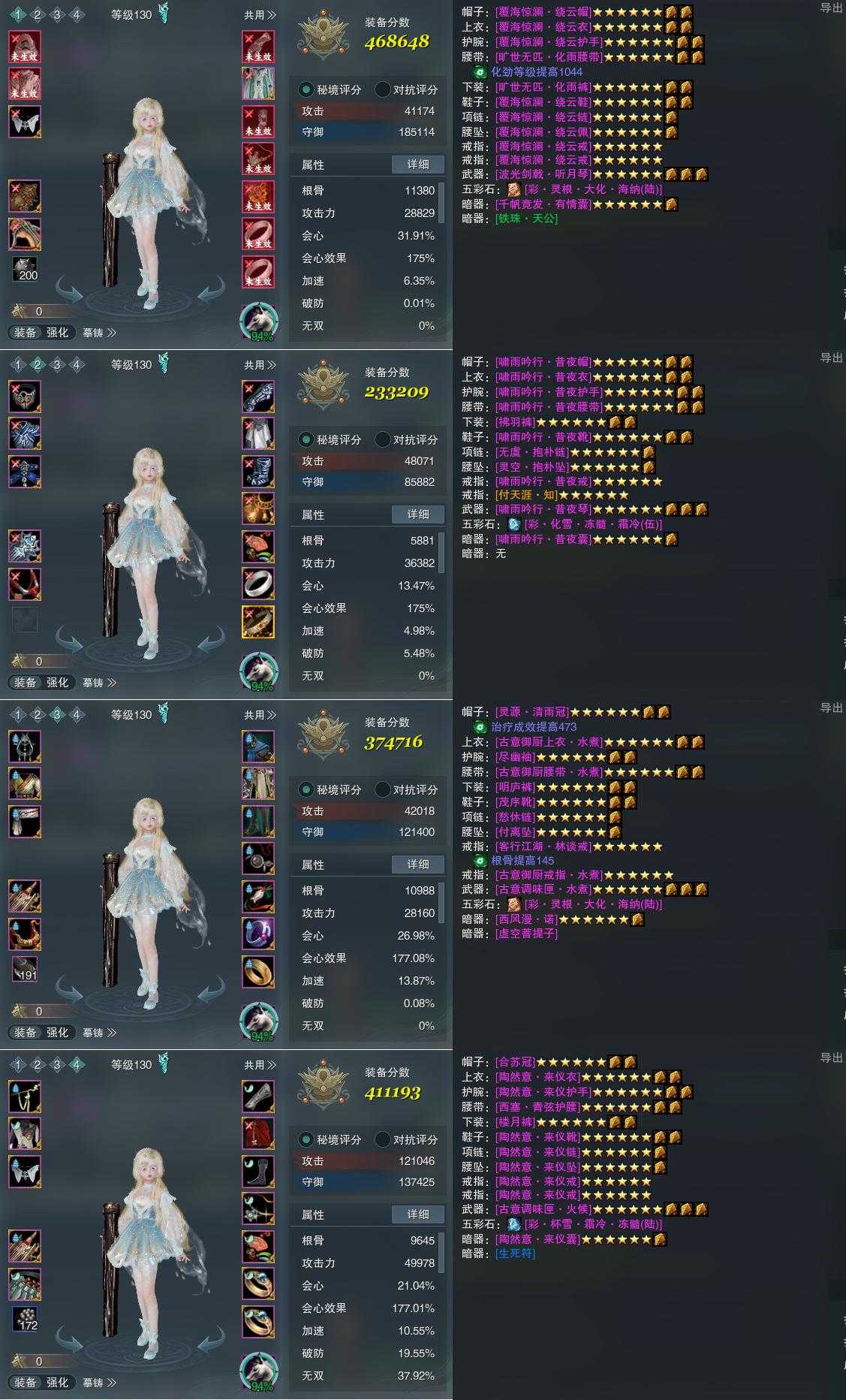【装备】130级,相知PVP468648,装备二233209,相知PVE374716,长歌装备四411193