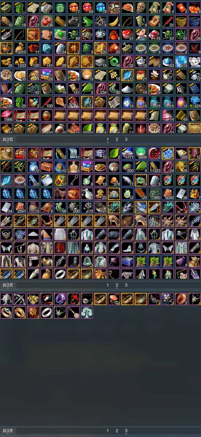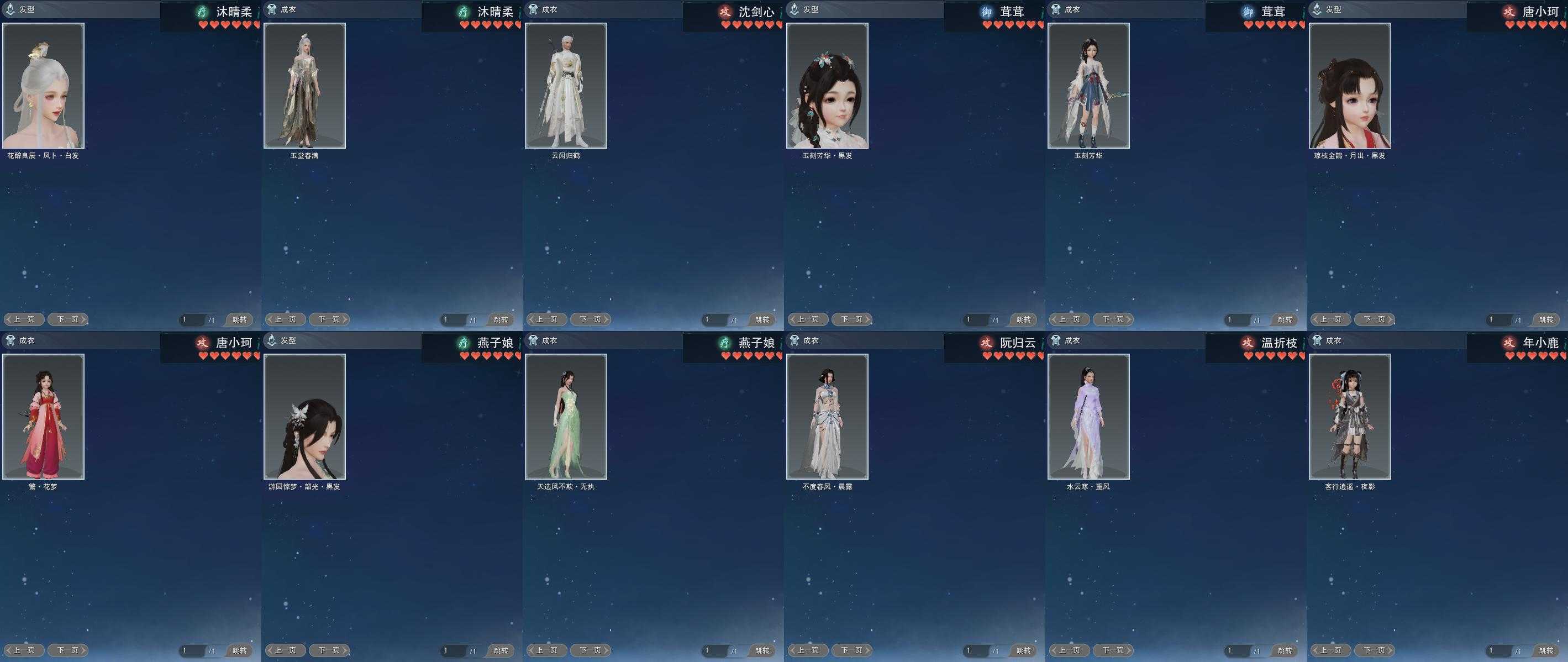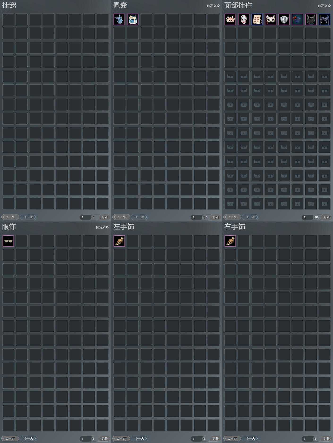 【发型】金发10个[资历金, 鼠金, 中秋金, 蝶金, 一代灰金, 水母金, 铃金, 傲月金发, 白游园金发, 白陇西金发], 红发1个[鸡红], 黑发21个, 白发11个, 盒子发型[雪月白发, 黑谪仙白发, 净尘黑发, 澄琼枝黑发, 白游园黑发, 小熊黑发, 十二黑, 小熊白发, 红六七白发, 竹影火莲黑发, 白雨山前黑发, 绿幽昙黑发, 黑傣族黑发, 粉鹿黑发, 粉鹿白发, 白蛇盒黑发, 白蛇盒白发], 总页数5