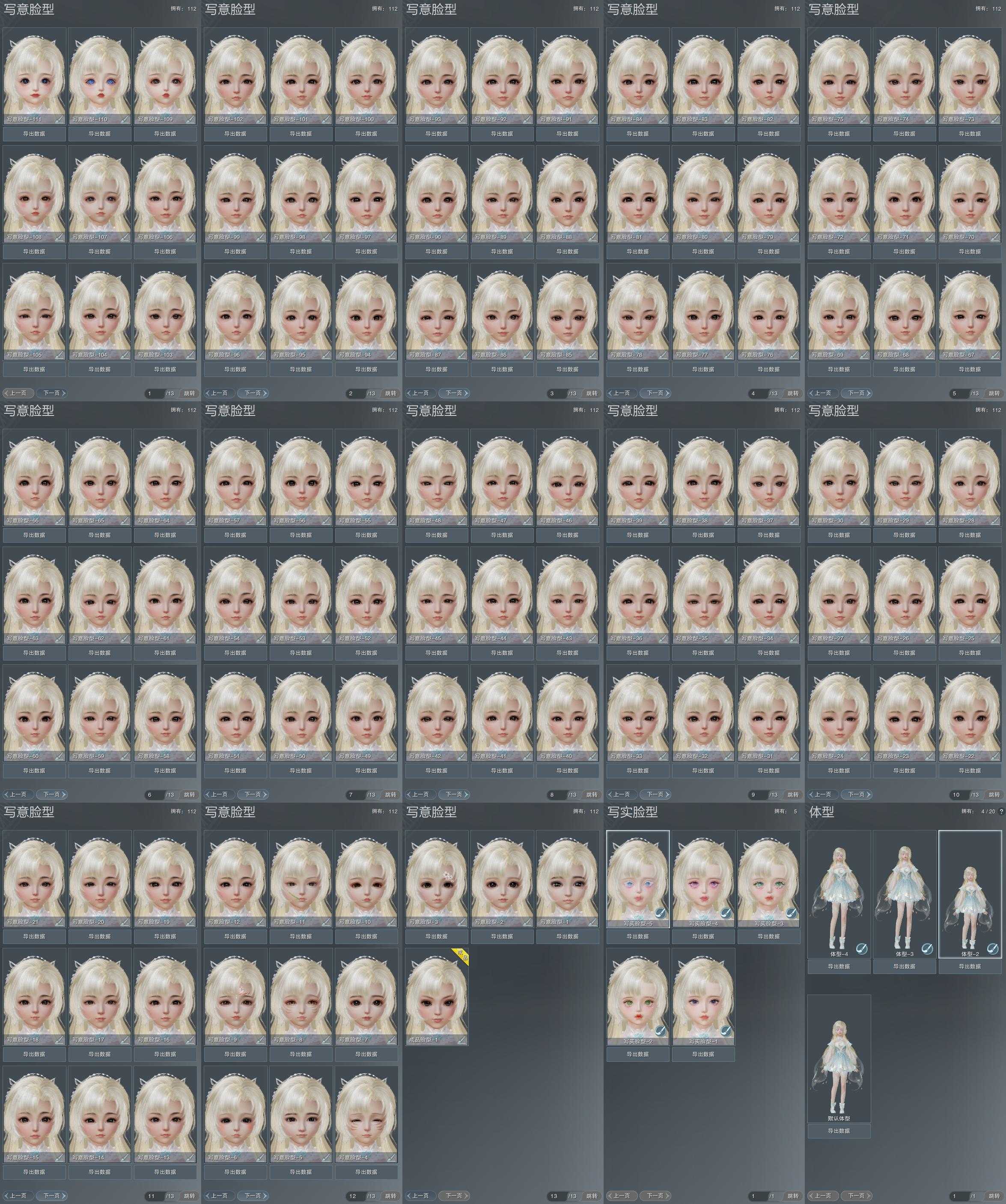 【捏脸】写意脸型112个,写实脸型5个,体型4个