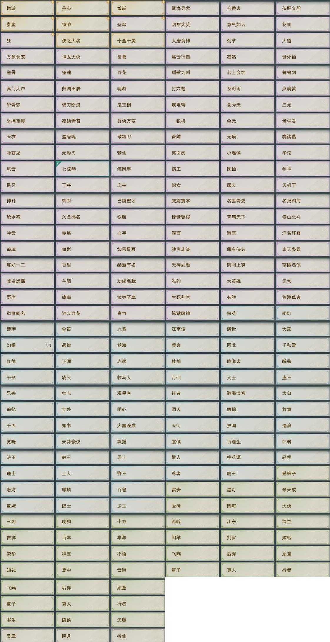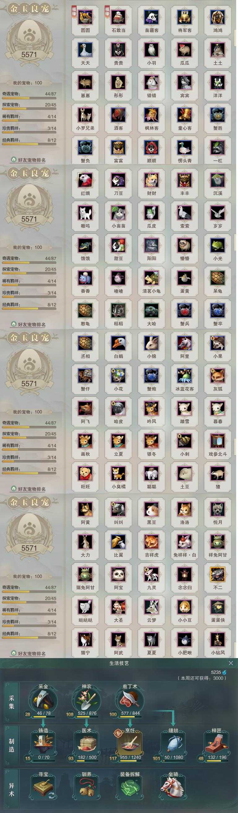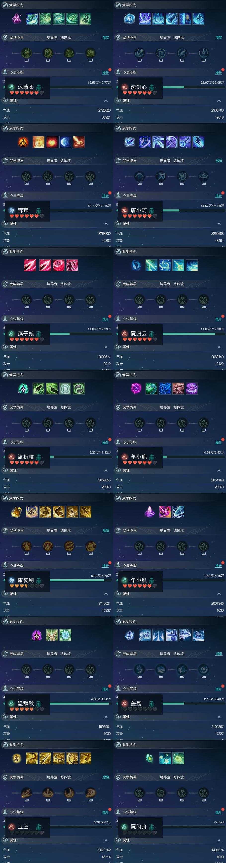 【同伴】沐晴柔79级境界壹,沈剑心78级境界壹,茸茸76级境界壹,唐小珂74级境界壹,燕子娘72级境界壹,阮归云69级境界壹,温折枝68级境界壹,年小鹿67级境界壹,康宴别64级境界壹,年小熊62级境界壹,温辞秋61级境界壹,盖聂59级境界壹,卫庄57级境界壹,阮闲舟1级境界壹