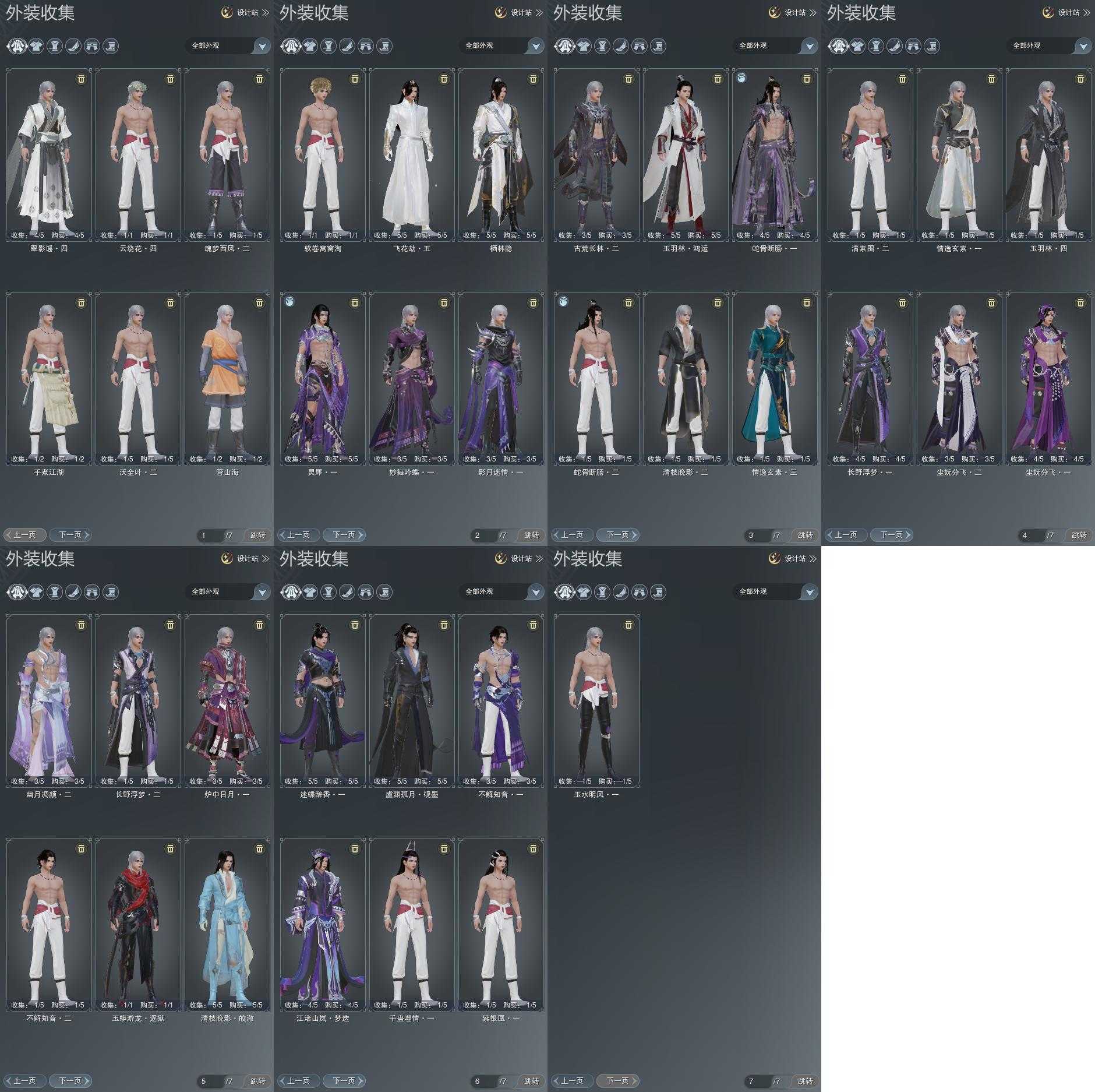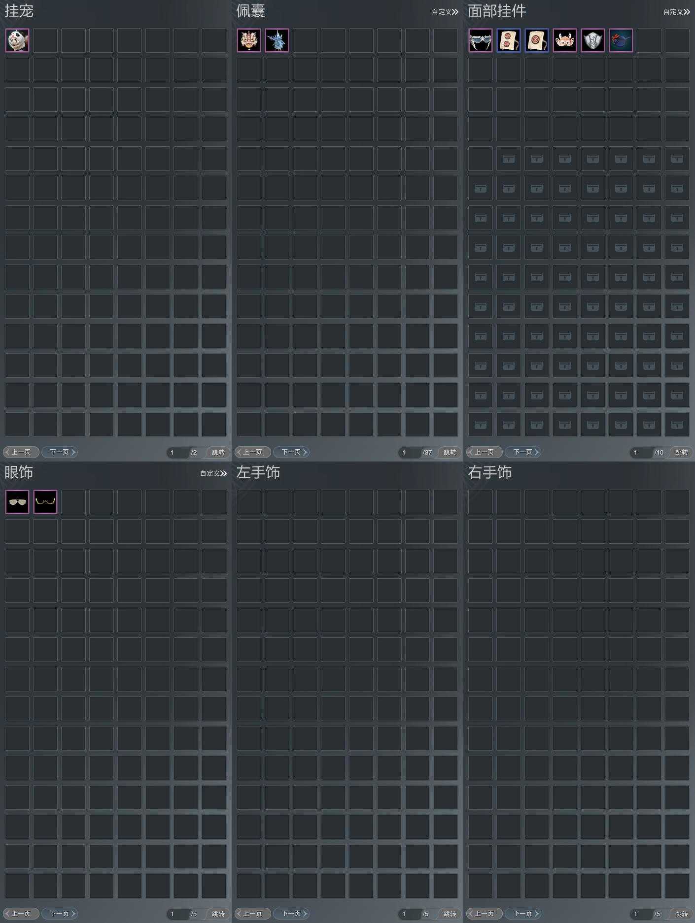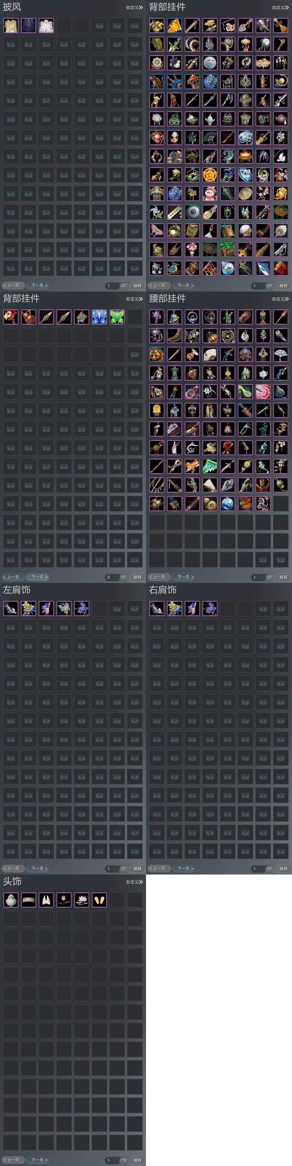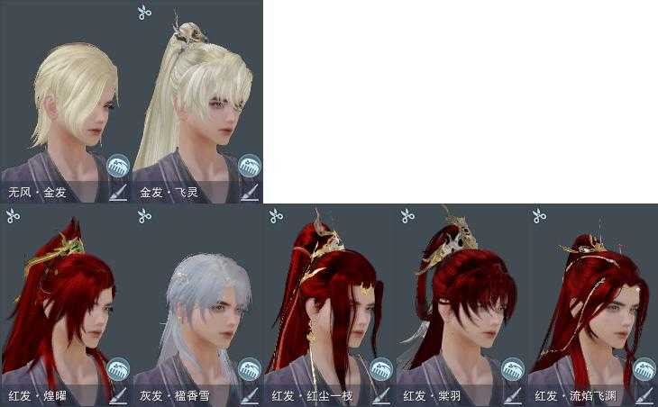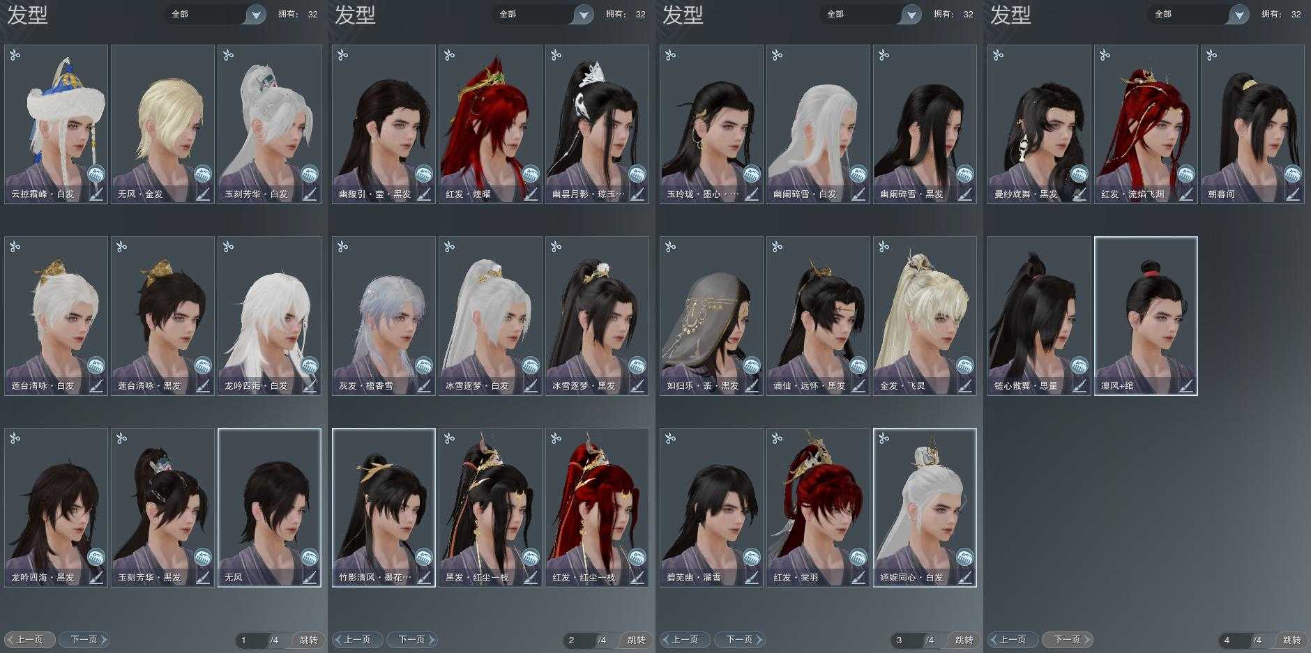 【发型】金发2个[飒金, 无风金发], 红发5个[九红, 十红, 十二红, 兔红, 一代灰], 黑发16个, 白发7个, 盒子发型[丝路黑, 黑谪仙黑发, 四代七夕白发, 幽阑黑发, 墨心黑发, 幽阑白发, 十二黑, 竹影墨花黑发, 花滑黑发, 花滑白发, 白幽昙黑发, 白幽馥黑发, 龙吟盒黑发, 莲台盒黑发, 龙吟盒白发, 莲台盒白发, 云掠霜峰白发], 总页数4