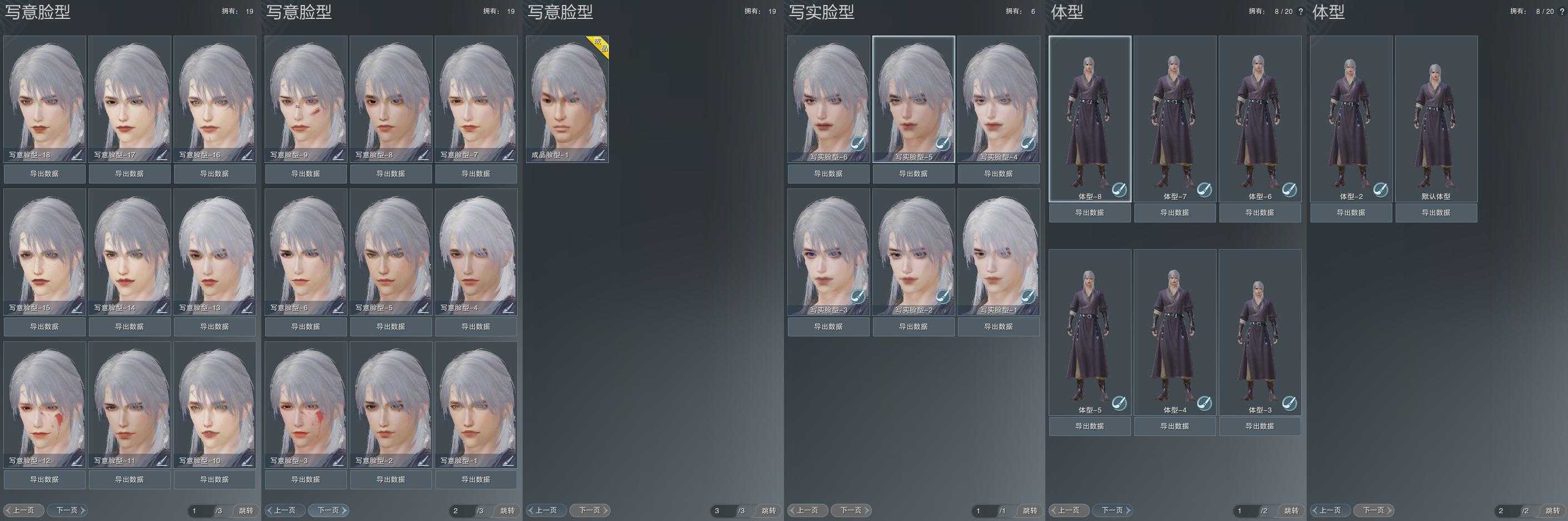 【捏脸】写意脸型19个,写实脸型6个,体型8个