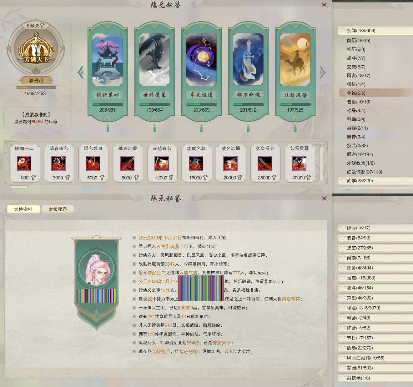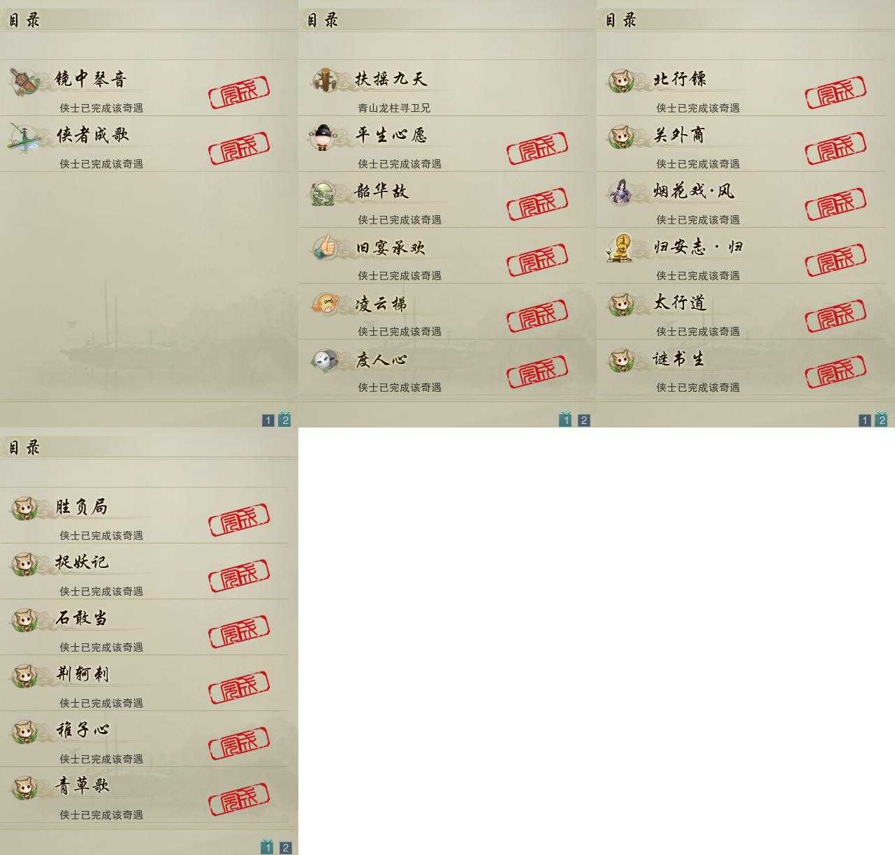 【奇遇】8个[平生心愿, 韶华故, 扶摇九天, 凌云梯, 度人心, 旧宴承欢, 镜中琴音, 侠者成歌]