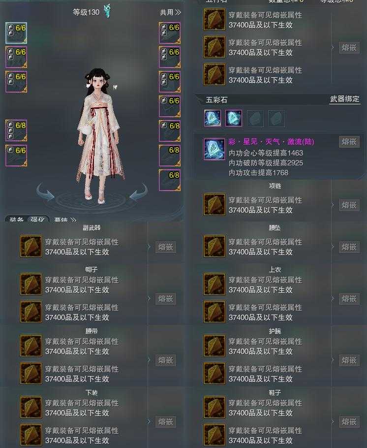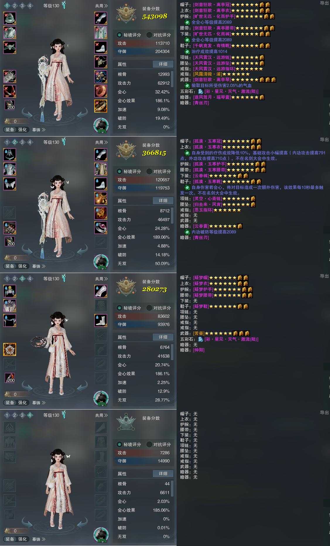 【装备】130级,莫问PVP543098,长歌装备二366815,装备三280273,装备四0