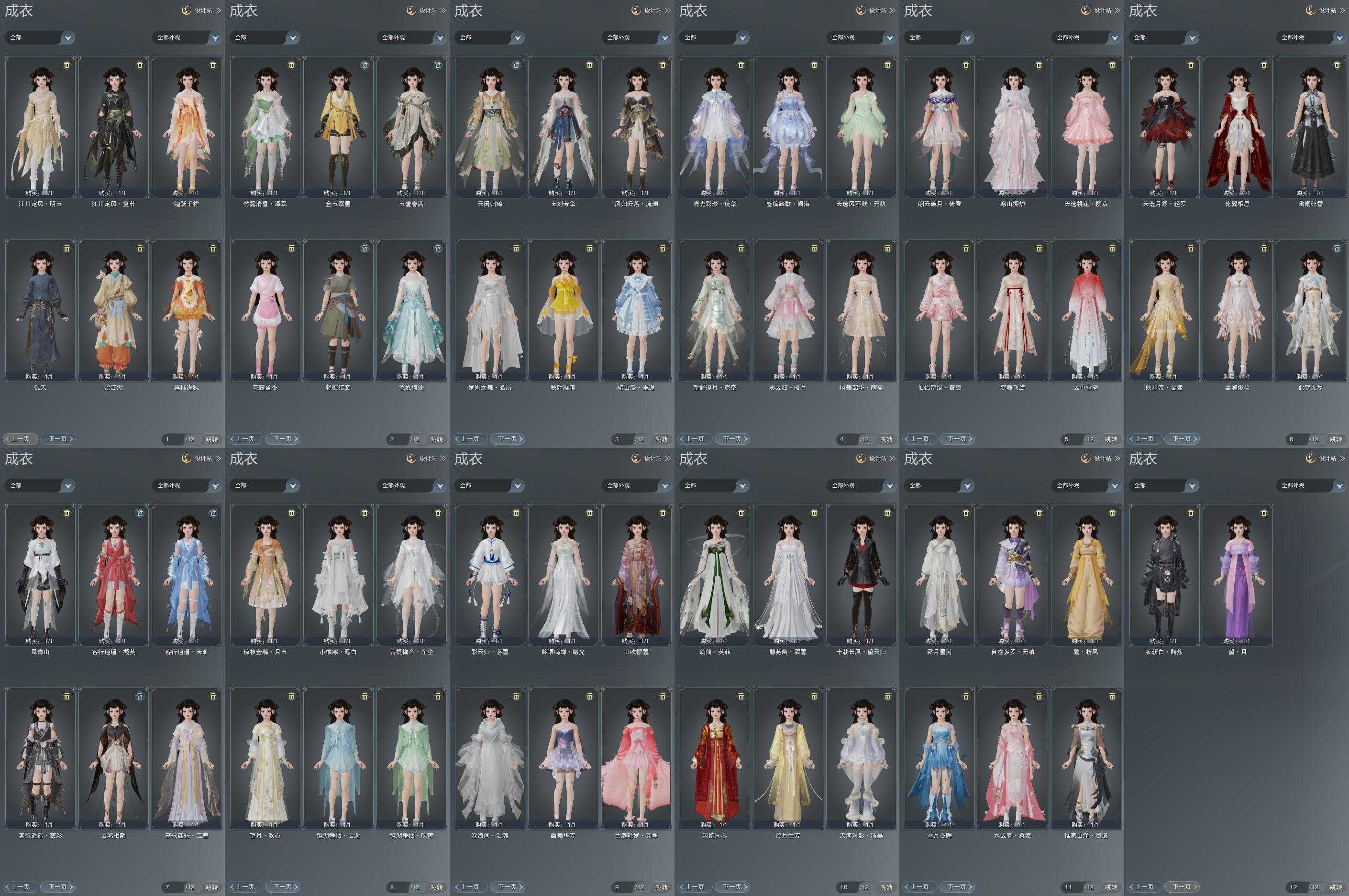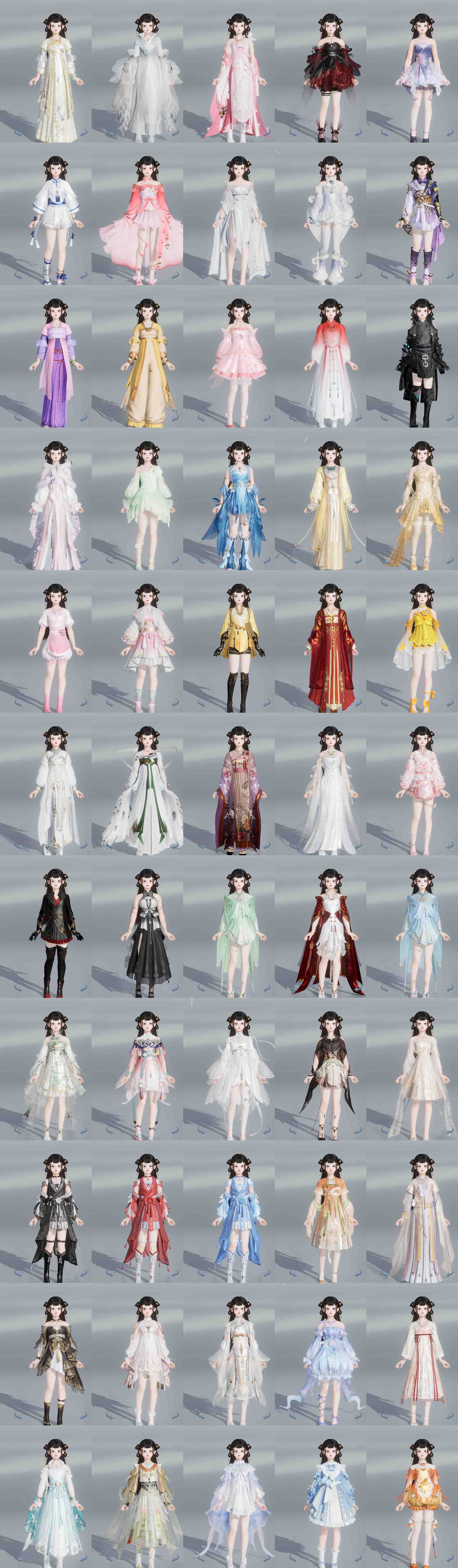限时限量:[水云寒桑海, 打歌服, 兰庭新翠, 白长天, 十三万资历衣, 烟花套, 镜湖吹荷, 镜湖云遥, 十二周年工作服, 客行逍遥夜影, 客行逍遥撷英, 客行逍遥天旷, 一期福袋成衣, 幽涧愀兮, 十三周年成衣, 蓝水母, 十四周年工作服, 云闲归鹤]