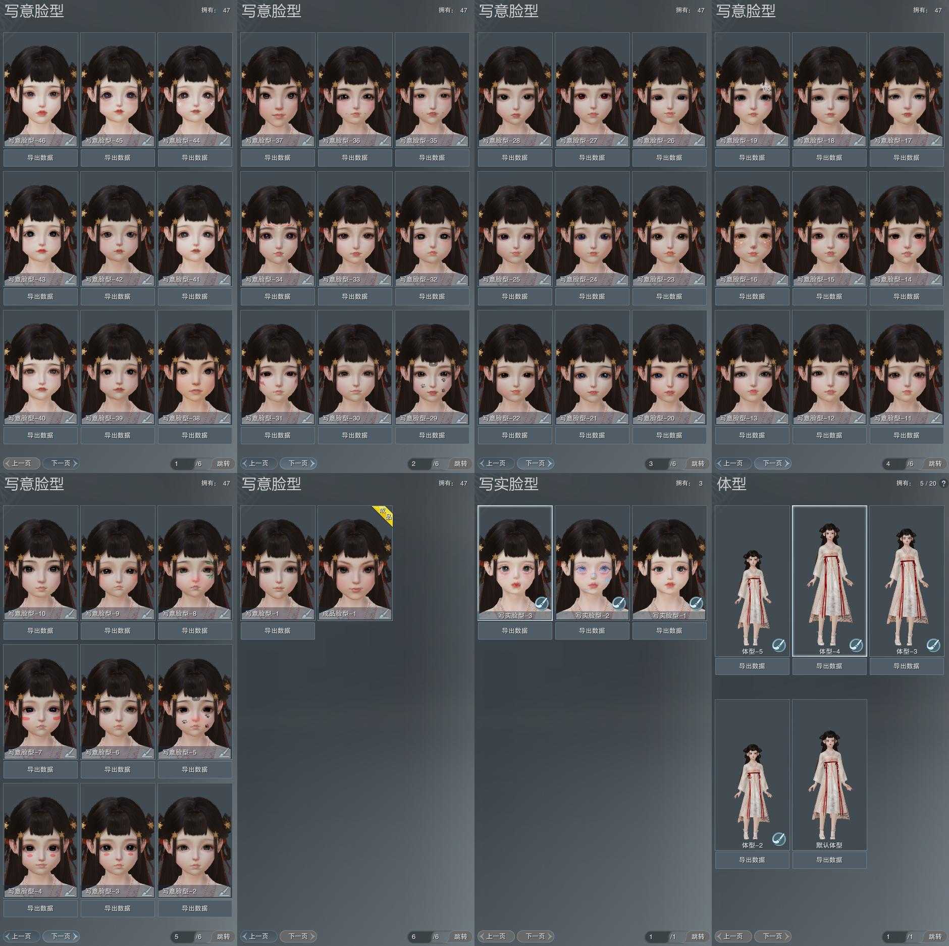 【捏脸】写意脸型47个,写实脸型3个,体型5个