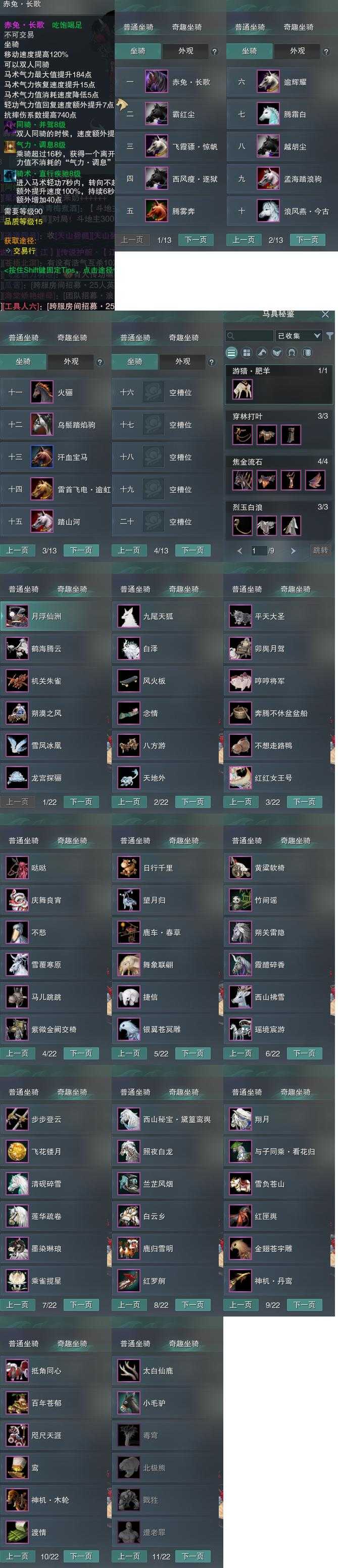 【坐骑】15个[西风瘦逐狱, 飞霞骠惊帆, 赤兔长歌, 浪风燕今古, 霸红尘, 雷首飞电逾虹, 乌鬃踏焰驹]