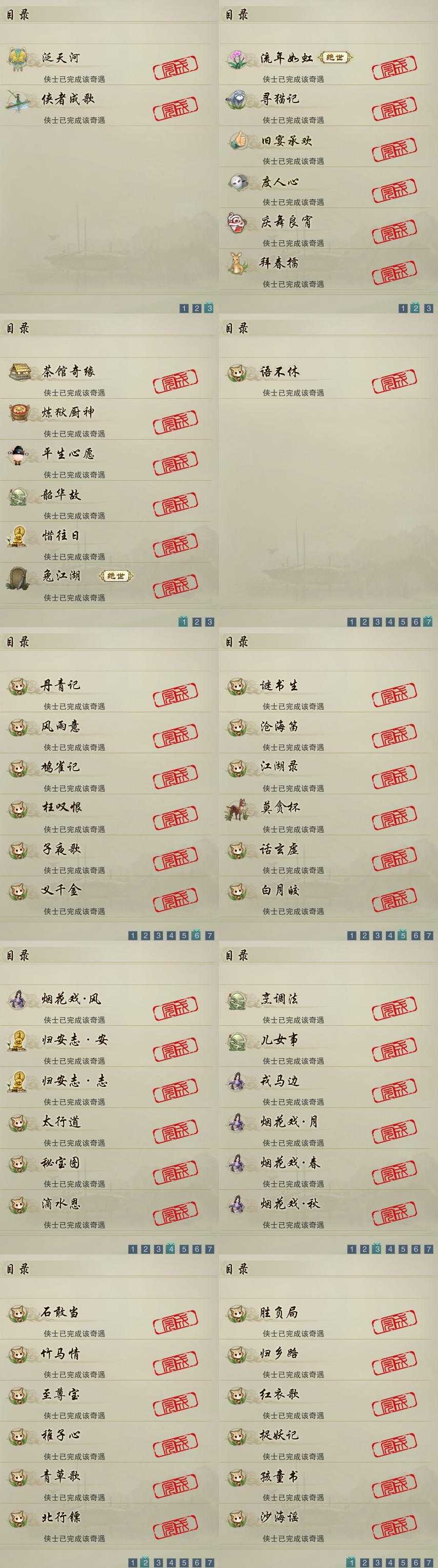 【奇遇】14个[平生心愿, 兔江湖, 惜往日, 韶华故, 流年如虹, 寻猫记, 茶馆奇缘, 庆舞良宵, 炼狱厨神, 度人心, 旧宴承欢, 泛天河, 侠者成歌, 拜春擂]
