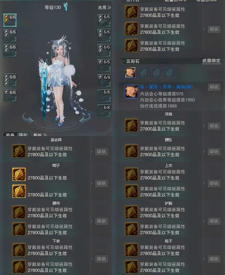 【装备】130级,装备一0,相知装备二462100,莫问装备三428408,装备四2