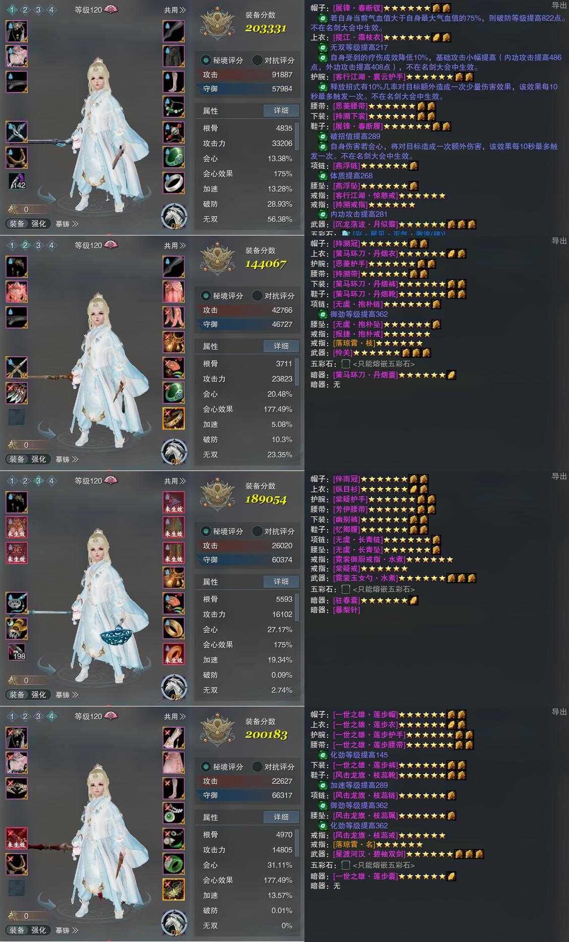 【装备】装备一203331,装备二144067,装备三189054,装备四200183