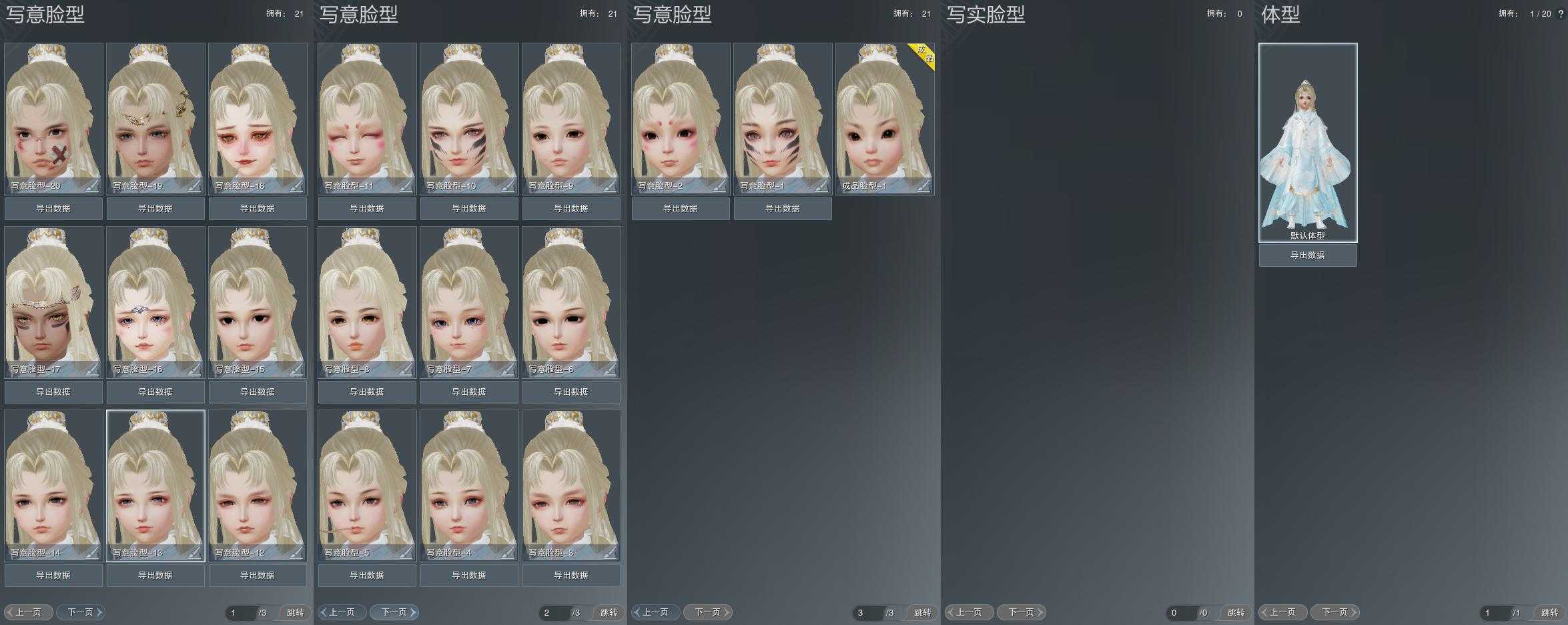 【捏脸】写意脸型21个,写实脸型0个,体型1个