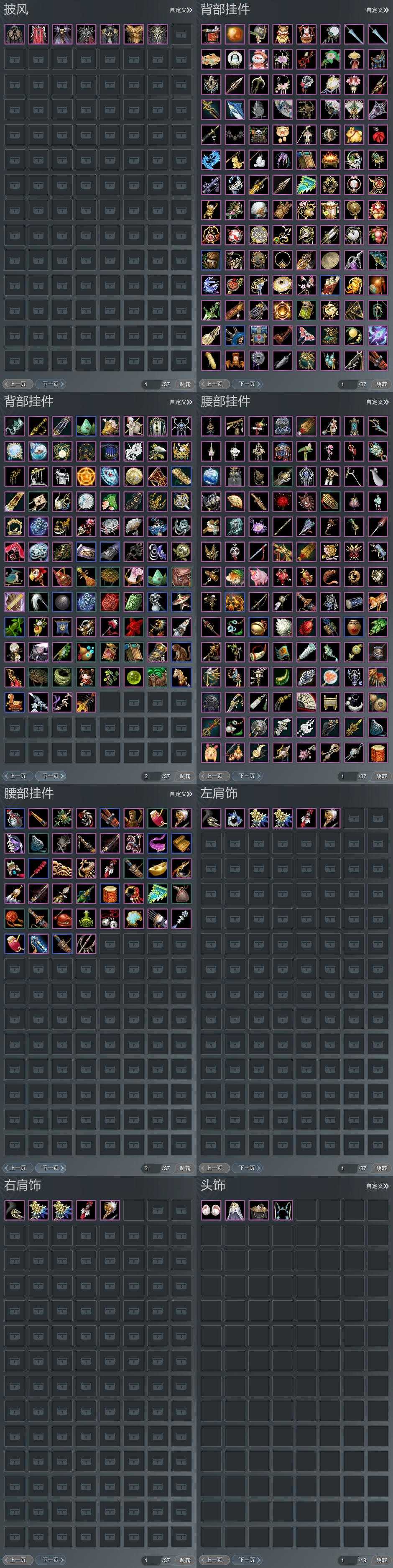 【披风】7个,[刀宗预热披风, 7W资历披风, 衍天预热披风, 苍盒子披风]