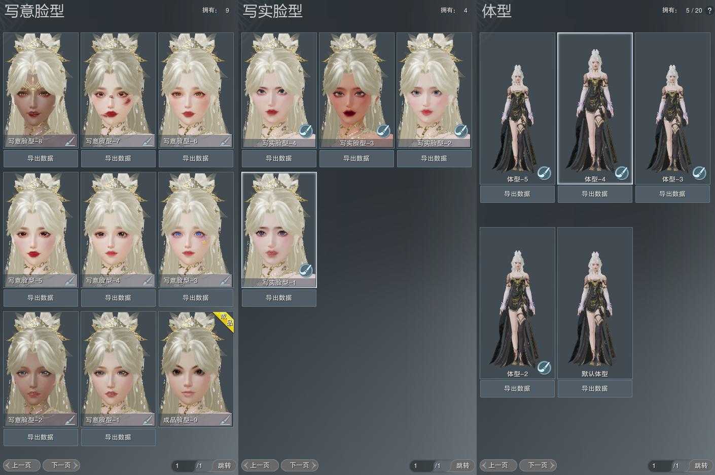 【捏脸】写意脸型9个,写实脸型4个,体型5个