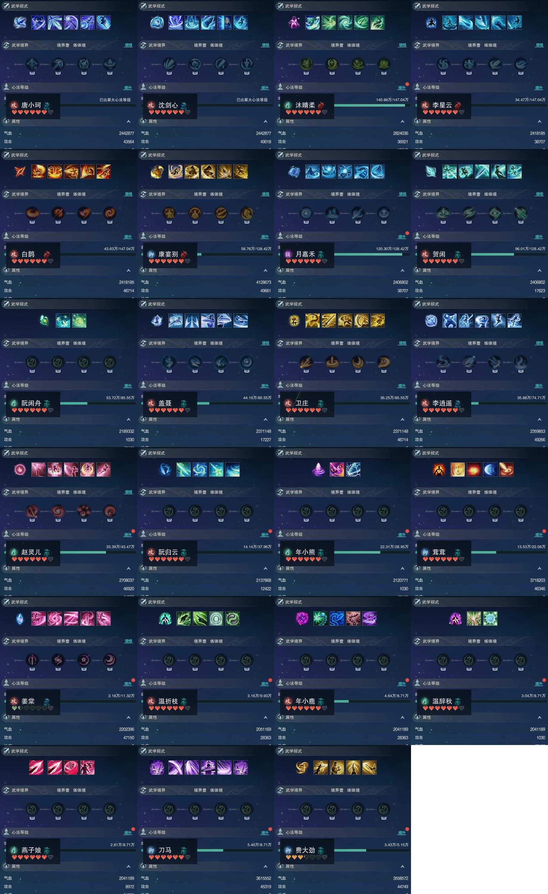 【同伴】唐小珂90级境界壹,沈剑心90级境界壹,沐晴柔87级境界壹,李星云87级境界壹,白鹊87级境界壹,康宴别86级境界壹,月嘉禾86级境界壹,贺闲86级境界壹,阮闲舟83级境界壹,盖聂83级境界壹,卫庄83级境界壹,李逍遥82级境界壹,赵灵儿78级境界壹,阮归云77级境界壹,年小熊75级境界壹,茸茸73级境界壹,姜棠68级境界壹,温折枝67级境界壹,年小鹿66级境界壹,温辞秋66级境界壹,燕子娘66级境界壹,刀马66级境界壹,费大劲62级境界壹